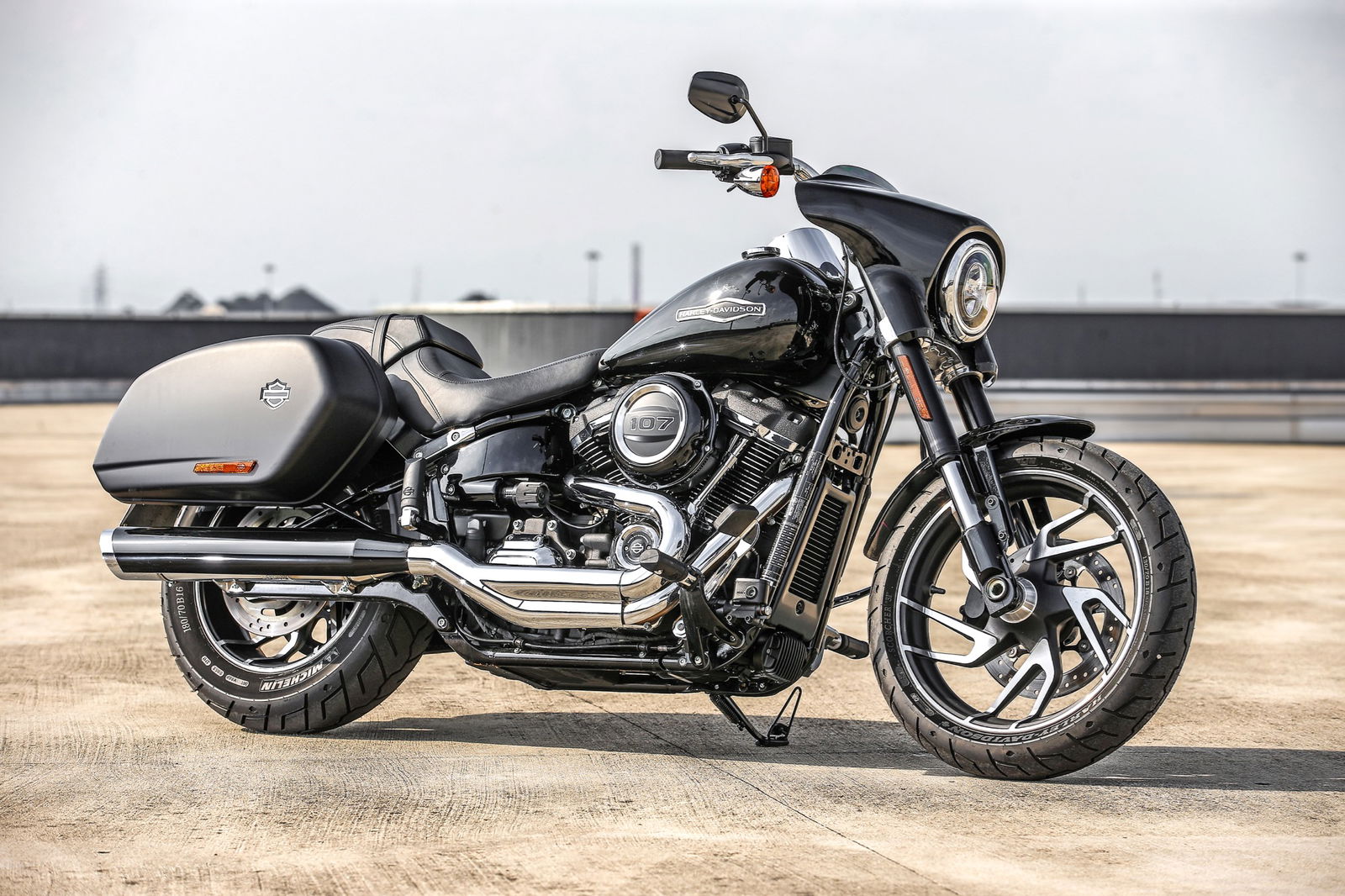 Harley-Davidson Sport Glide: 1.745 centimetri cubi, ripartiti tra i due grossi pistoni da 100 mm di alesaggio, e ben 145 Nm di coppia. Queste le caratteristiche principali del motore bicilindrico a V Milwaukee-Eight 107, come ben evidenziato sul filtro dell’aria. Moto che appartiene alla famiglia delle Softail “coda morbida” riconoscibili nel design per quella linea immaginaria che parte dal cannotto di sterzo, scivola sotto il serbatoio e che passa dal forcellone fino al perno della ruota posteriore. Una scelta estetica distintiva voluta per nascondere l’ammortizzatore posteriore e far credere all’osservatore che nella parte posteriore non esista alcuna sospensione a mitigare e filtrare le asperità dell’asfalto lungo il viaggio. I tempi moderni non solo vedono importanti cambiamenti a livello di sospensioni ma proprio il monoammortizzatore, in precedenza montato orizzontalmente sotto il motore, oggi è posizionato posteriormente in una posizione più classica ed efficace nell’assorbimento delle asperità. Non lavora più in trazione ma in compressione.110 KM – GLI OCCHI ADDOSSO377 KM – LASCIATI GUIDARE630 KM – GRANDE COMFORT855 KM – DOVE MIGLIORARLA?1001 KM – IL PEZZO FORTEIL VIDEO DELLA PROVA