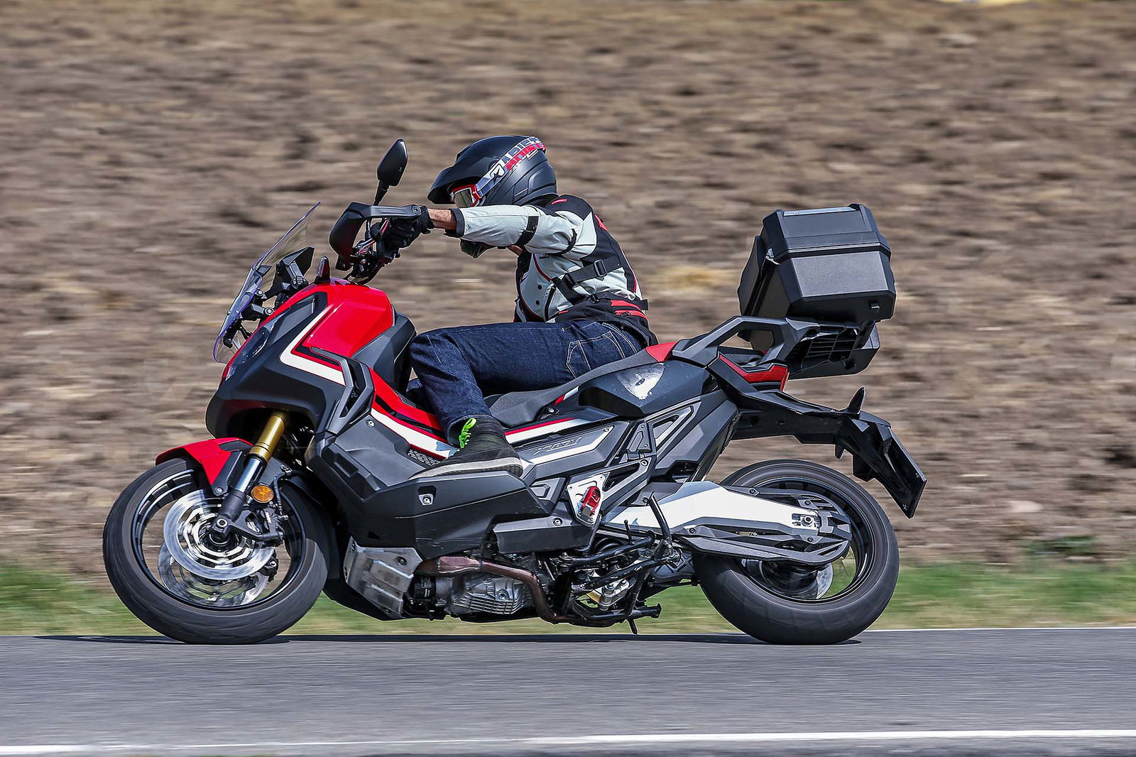 Che Honda abbia azzeccato la ricetta lo dicono i numeri di vendita: nel 2018, l’X-ADV è stato il maxi scooter più venduto in Italia. Il merito è dell’intero pacchetto: il design, studiato in Italia, è futuristico, la meccanica è innovativa ma soprattutto è il primo della sua categoria ad aver sondato questo terreno. Sfrutta il bicilindrico in linea a corsa lunga già visto sui modelli NC e Integra: 745 cc per 55 cv e 68 Nm, i numeri sono al top della categoria maxi scooter (sempre che l’X-ADV possa essere ancora inteso come tale), enfatizzati tra l’altro dalla rapportatura accorciata, che rende il SUV a due ruote Honda decisamente più brillante in accelerazione rispetto allo stradale Integra.I dati dichiarati sul consumo medio sono confortanti: 27 km/l. Merito anche del cambio DCT a doppia frizione, arrivato ormai alla terza generazione. Disponibili per il pilota ci sono la mappa Drive, per le andature più tranquille, e la mappa S, suddivisa a sua volta in tre sottolivelli S1, S2 e S3. La ciclistica invece fa affidamento su sospensioni a lunga escursione: la forcella scorre per ben 154 mm, la ruote posteriore per 150 mm. Forcella e mono sono entrambi regolabili e quest’ultimo è infulcrato al forcellone in alluminio attraverso un sistema di leveraggi. Significativo è anche il dato di luce a terra, che con 162 mm sottolinea la vocazione “allroad” dell’X-ADV. Stesso discorso per lo scarico, posizionato in alto e al riparo dagli urti. Poi c’è la parte “utility”, che comprende un vano sottosella capace di contenere caschi di tutti i tipi. Di serie, c’è anche il bauletto Adventure da 35 litri.La prima presa di contatto con l’X-ADV richiede un minimo di malizia. In foto forse non rende l’idea, ma le sue dimensioni sono abbastanza importanti. E la scheda tecnica lo conferma: i 238 kg con il pieno e i 1.590 mm d’interasse non sono molto d’aiuto nelle manovre a bassa velocità o quando si sposta a mano lo scooter e la strada è leggermente in pendenza. Anche perché nelle partenze, la frizione non permette di gestire al meglio le piccole aperture del gas, con il risultato di un leggero effetto on-off che infastidisce un po’ nelle classiche manovre nel garage o nel parcheggio del supermercato. Detto questo, a stupire è senza dubbio la qualità con cui è stato realizzato. Mi ha colpito in modo particolare la cura per i dettagli, merce rara di questi tempi. Solo un paio di cose stonano: la prima è il pulsante per escludere il controllo di trazione, si vede che è stato aggiunto in un secondo momento, e poi la mancanza di una spia per segnalare l’apertura del cavalletto laterale: mi sarebbe piaciuto averla in qualche situazione.