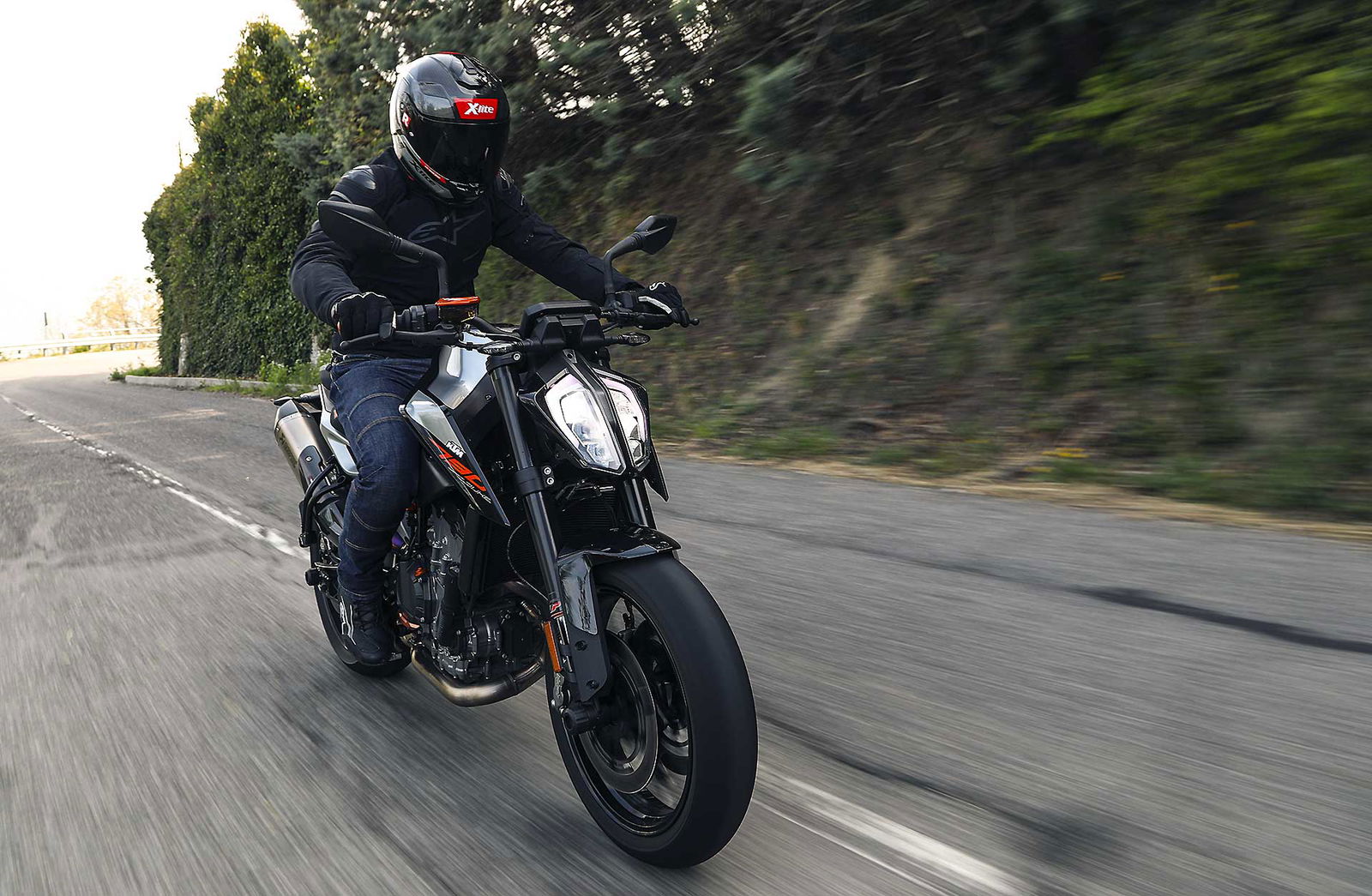 I pregi della KTM 790 Duke sono quattro P: prezzo, prestazioni, peso e posizione in sella. E’ una naked media ma fa le cose da grandi, ha un’elettronica veramente evoluta e non è cosa da poco visto il prezzo. Ha una guida svelta e sempre precisa, quando cambi rapidamente direzione l’avantreno si alleggerisce appena e quando torna a terra rimane dritto, solido: non sbacchetta.Il motore ha un’erogazione corposa ai medi, non è aggressiva, c’è un buon allungo per arrivare con la stessa marcia alla curva successiva, ed è meglio non toccare i 10.000 giri perché la curva tende ad appiattirsi. Spazio a miglioramenti: mi sarebbe piaciuta una corsa più corta del cambio, che è però valorizzato dal quick shifter che funziona bene dai 3.000 giri in su, e innesta marce in rapidissima sequenza. Attenzione perché è sensibile alle carezze, quindi piede ben arretrato sulla pedana quando si guida.Due considerazioni su freni e gomme. Le pastiglie di primo equipaggiamento sono pensate per un pubblico ampio e pur garantendo una buona frenata le avrei preferite un po’ più aggressive al pari delle gomme della Maxxis, che sostituirei per mia curiosità con un treno di pneumatici più performanti perché, ne sono certo, la ciclistica è in grado di reggere ben altro grip.192 KM, MA QUANTO È AGILE?421 KM SU MISURA PER IL MISTO608 KM IL BELLO DELL’ELETTRONICAIL VIDEO DELLA PROVA