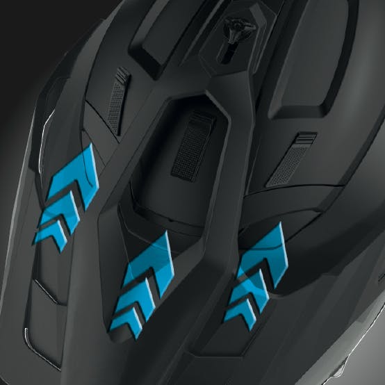 La ventilazione è affidata al sistema “AirBooster Technology” assicura un’ottimale aerazione laddove la testa del pilota necessita maggiormente: l’aria entra dalla presa superiore e viene condotta forzatamente, senza dispersioni, nelle zone più critiche, al fine di garantire il massimo comfort anche in condizioni di guida estreme. Altre prese d’aria sono piazzate sulla mentoniera, così da limitare l’appannamento, mentre sono previsti degli estrattori posteriori per espellere l’aria calda.