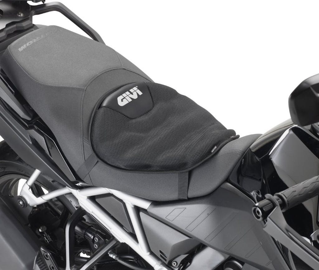 GIVI migliora la comodità di seduta durante i viaggi con il cuscino da sella universale ad aria S230. Realizzato in TPU, regge fino a 130 kg di peso, è rivestito in un tessuto traspirante ed è provvisto 2 valvole integrate per gonfiare e sgonfiare l’interno con la sola pressione della mano. Il fondo antiscivolo offre un posizionamento sicuro del cuscino per la sicurezza del pilota. Dimensioni: 39,5 x 36 x 4 cm; disponibile in nero. Prezzo: 90 euro.