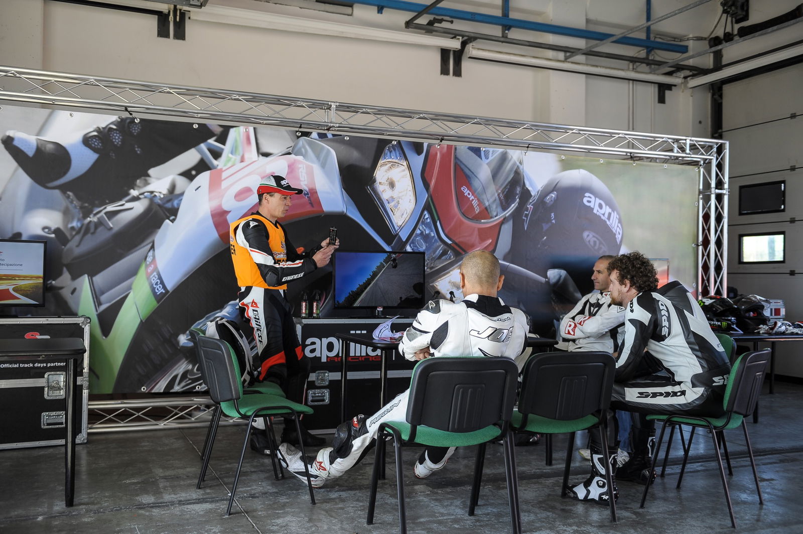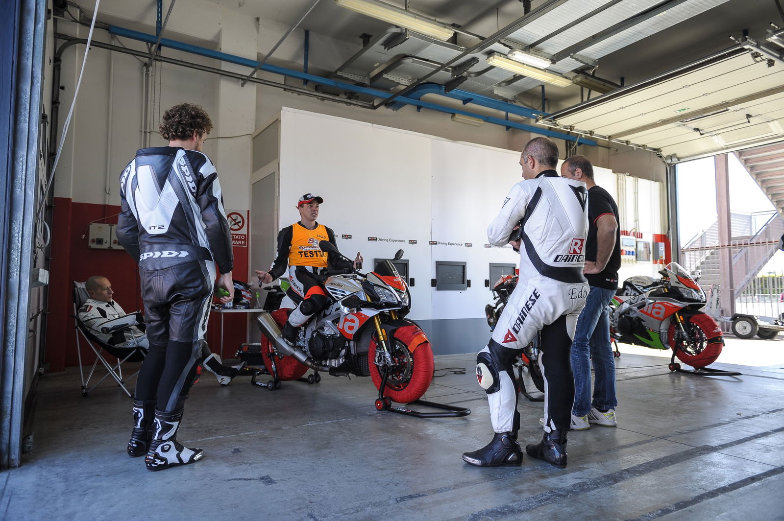 Didattica al centroUn altro elemento peculiare dell’Aprilia Riding Academy è la didattica: si parte dalle basi, la posizione di guida e ancor prima la postura del pilota, per arrivare ai massimi livelli di prestazione e specializzazione. Molta sostanza, dunque, con un’attenzione particolare dedicata alla preparazione fisica. Non a caso ai corsi è presente un fisioterapista, che non soltanto rende meno faticosa la giornata di guida, ma fornisce preziosi indicazioni sulla preparazione necessaria a ottenere il massimo da un’esperienza dove la prestazioni fisiche hanno una rilevanza assoluta, il più delle volte sottovalutata.C’è il fisioterapistaLa presenza del fisioterapista dà anche l’idea delle attenzioni riservate ai clienti: comprendono l’assistenza tecnica con consulto gratuito degli esperti tecnici presenti; il pranzo presso il ristorante del circuito, l’accesso all’hospitality Aprilia, lo spazio in un box dedicato fin dalla sera precedente il corso. E ultima non certo per importanza è l’assicurazione pioggia, che in tutti i sensi mette al riparo dagli imprevisti meteorologici. Si tratta di un pacchetto tutto compreso, garantito da un organizzatore notissimo e apprezzato nel panorama italiano: Specialbikecircuit, cioè Giorgio e Jasmine, ben conosciuti da chi frequenta le piste italiane.