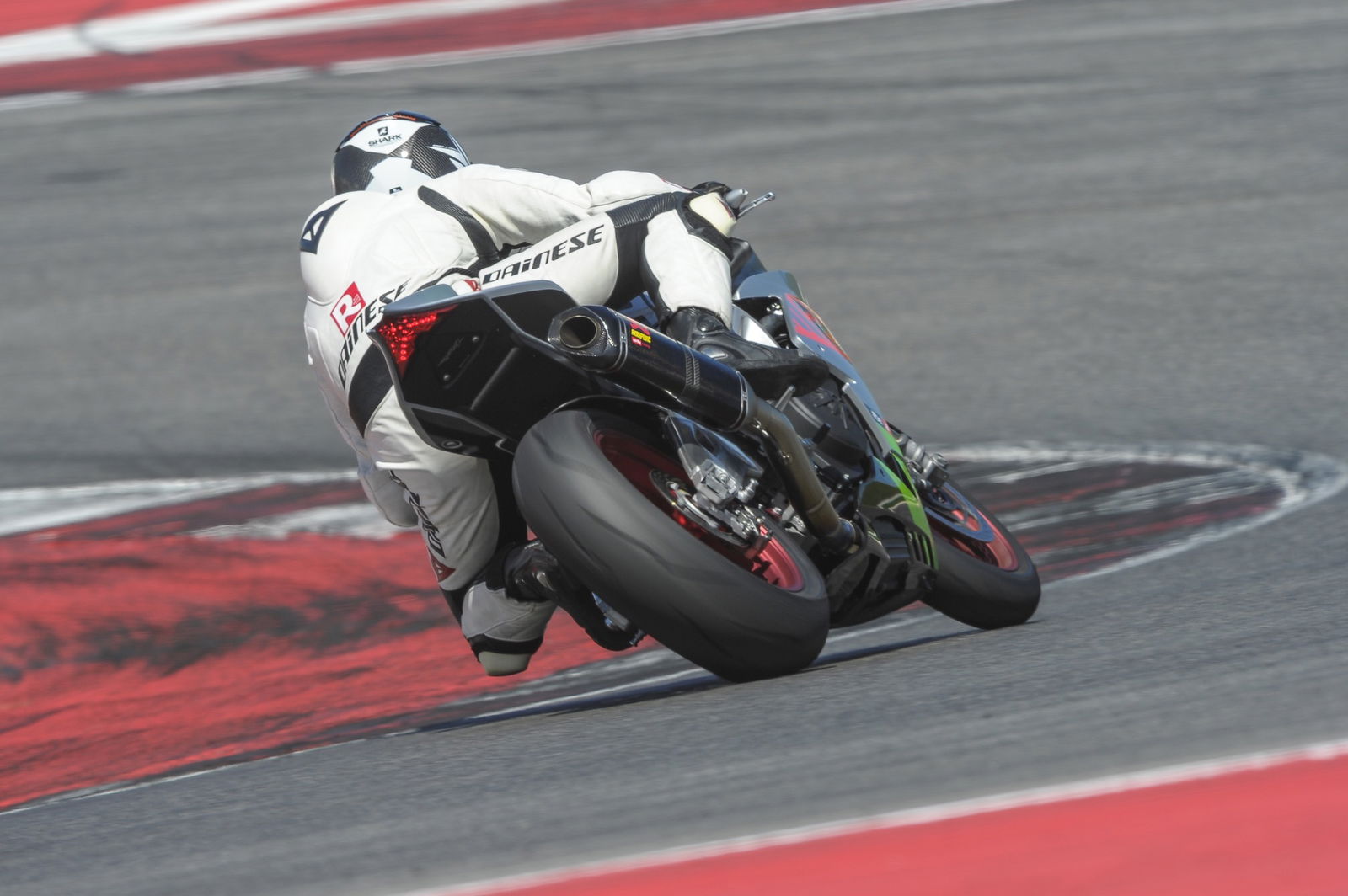 Alla guida della RSV4Per l’occasione ho avuto la possibilità di guidare per la prima volta la Aprilia RSV4 RF my2017 con pneumatici Pirelli Supercorsa in mescola: 201 cv di potenza, che salgono di ulteriori 5 grazie al terminale di scarico Akrapovic. La moto, rivista in occasione del passaggio all’omologazione Euro 4, mantiene la sua straordinaria efficacia, grazie alla ciclistica di altissimo livello e all’elettronica ulteriormente evoluta (c’è persino il “Pit Limiter” per limitare la velocità in corsia box).Il motore V4 di 65° rimarca il suo assoluto fascino, sottolineato non soltanto dall’erogazione – sbagliare marcia non è mai un problema – ma anche dall’emozionante rumore di scarico. Infatti, nonostante i limiti alla rumorosità posti da norme inutilmente restrittive, il nuovo sistema con valvola a ghigliottina assicura dai medi regimi una colonna sonora emozionante.