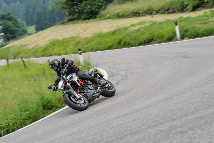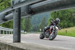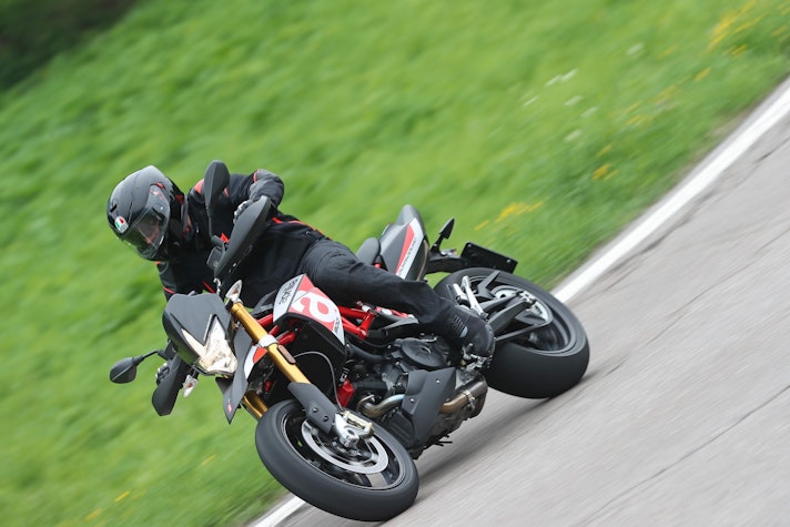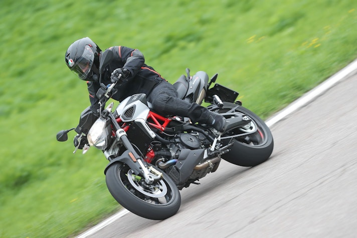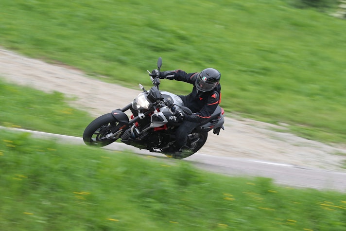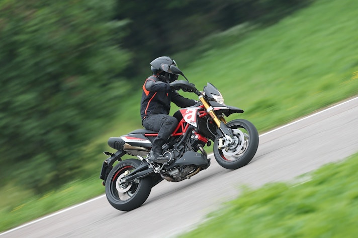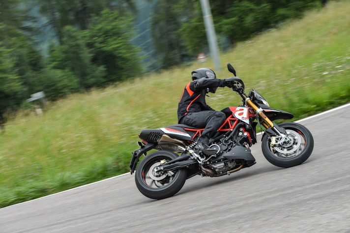 LIVECon Aprilia Dorsoduro e Shiver il bicilindrico a V di 90° cresce di cilindrata fino a 900 cc grazie all’allungamento della corsa da 56,4 a 67,4 mm, a fronte dell’alesaggio invariato a 92 mm. La potenza tocca quota 95,2 cv a 8.750 giri/min, mentre la coppia ancora più significativamente passa da 82 a 90 Nm, con un rafforzamento costante lungo tutto l’arco di erogazione. Nuovo il circuito di lubrificazione, per un motore ora omologato Euro 4 e proposto anche in versione depotenziata a 35 kW per i titolari di patente A2.TRE MAPPATURELa nuova centralina elettronica Marelli 7SM si interfaccia con il Ride By Wire completamente rivisto, ora a “joystick” come quello utilizzato sulla RSV4, con le componenti principali tutte integrate nella manopola e l’insieme più leggero di 550 grammi. Confermata la possibilità di scegliere fra tre modalità di guida: Sport, Touring e Rain; altrettanti i livelli di intervento del rinnovato controllo di trazione, escludibile. L’ABS è Continental a due canali, mentre la strumentazione digitale con pannello TFT a colori permette tra le altre funzioni di accedere all’Aprilia Multimedia Platform opzionale di collegamento dello smartphone alla moto.CERCHI ALLEGGERITIIl telaio, incentrato su una struttura mista, è la combinazione tra la parte superiore a traliccio in tubi di acciaio e quella centrale-inferiore con piastre in lega di alluminio; interessante la riduzione di peso per i cerchi a tre razze sdoppiate: oltre 2 kg in meno, un dato che dovrebbe tradursi nel significativo aumento della maneggevolezza. Anche la strumentazione è nuova e in comune con le due V4 di Casa ApriliaPERSONALIZZARLA? SI GRAZIEL’impianto frenante monta pinze radiali a 4 pistoncini e dischi di 320 mm davanti, mentre dietro il disco è di 240 mm. Ricca la gamma di accessori originali, che include componenti in fibra di carbonio e in alluminio ricavati dal pieno, nonché accessori a vocazione turistica come la sella comfort e le borse laterali. Prezzi? Shiver a 8.340 euro e Dorsoduro a 9.490 euro.CONTINUA A LEGGERE –> VAI ALLA PROVARIDEÈ inutile perdersi in giri di parole, in Aprilia le moto le sanno fare bene. Non hanno perso il gusto di creare ciclistiche svelte e stabili, con personalità precise, con una bella passione per le curve e i tornanti stretti, senza però perdere di vista la stabilità sul veloce.STESSO MOTORE, DUE CICLISTICHEIl motore è condiviso dai due modelli: nello specifico la Dorsoduro ha un dente in meno di pignone per essere più “pronta” e reattiva nelle prime aperture di gas e perché in fondo non è la velocità massima il dato più interessante di questo modello. I cambiamenti partono dal telaio: non una semplice variazione di piastre della forcella ma una diversa inclinazione del cannotto di sterzo che determina, assieme alle sospensioni regolabili e al forcellone, una ciclistica più svelta o più stabile, con un baricentro alto o vicino all’asfalto.BICILINDRICO “ELETTRICO”Il bicilindrico Aprilia è un caposaldo di questa categoria di motori. Perché suona bene, scoppietta ogni tanto in rilascio, vibra poco e raggiunge con facilità gli oltre 9.000 giri indicati. Spinge meglio in alto che ai regimi medio bassi, ha tre mappature – non sono una novità del 2017 – che sono in grado di assecondare le esigenze di chi guida anche con l’aiuto di un traction control su tre livelli che lavora bene.L’intervento è chiaro: in caso di perdita di grip della ruota posteriore la centralina interviene parzializzando l’apertura delle ghigliottine dei corpi farfallati, in modo deciso e quasi eccessivo se il sistema è impostato al livello massimo, quasi impercettibile sul livello 1.IL MEGLIO OLTRE I 4.500La rapportatura più corta della Dorsoduro colma in parte l’erogazione fin troppo piatta del motore. Nonostante sia un bicilindrico ormai di cubatura consistente anche la prima apertura del gas risulta morbida: manca a mio avviso un pizzico di carattere, di spinta decisa per essere proiettati con decisione fuori dalle curve. Dopo i 4.500 giri indicati la musica cambia decisamente, accompagnata da un suono più gutturale dello scarico e un allungo deciso che ribadisce quale sia la cilindrata in questione.SELLE DIVERSE La scelta di acquistare il bicilindrico italiano vestito da motard o da naked moderna è chiaramente personale e figlio di un preciso stile di guida. Shiver e Dorsoduro sono molto diverse a partire dall’altezza della sella, più bassa e comodo la prima, in modo da ottenere un miglior inserimento nella moto; più alta e dominante la seconda, ma con limiti oggettivi quali il contatto difficile dei piedi a terra e una seduta decisamente dura.SOSPENSIONI DEDICATEAnche forcella e monoammortizzatore nascono per ciascun modello. Non sono intercambiabili benché regolabili e hanno lunghezze di interasse diverse, maggiori nella Dorsoduro che ha un passo e un angolo di sterzata superiori rispetto alla Shiver.Il setup delle due moto piace, perché comodo alle basse velocità e rigoroso andando di buon passo; pochi trasferimenti di carico in accelerazione e frenata, bella direzionalità anche impostando le curve con i freni in mano. Cerco il pelo nell’uovo sapendo di trovare negli amici di Aprilia terreno fertile e attenzione alle piccole critiche. A mio avviso la forcella della Dorsoduro meriterebbe un poco di scorrevolezza in più nella prima parte della corsa, quando l’asfalto non è perfettamente levigato, e il monoammortizzatore un giro in meno di precarica della molla: basterebbe a rendere la moto più comoda nel quotidiano urbano, dove ci si deve confrontare con tombini, rotaie e asfalti non in perfetto ordine, senza perdere nulla quando si cerca la percorrenza di curva e l’avantreno che scava l’asfalto.IN MEDIO STAT VIRTUSDefinire oggi una moto da 900 cc “media” fa sorridere: purtroppo la Euro4 ci sta insegnando che per non sacrificare e soffocare i cavalli bisogna crescere di cilindrata. Questa n