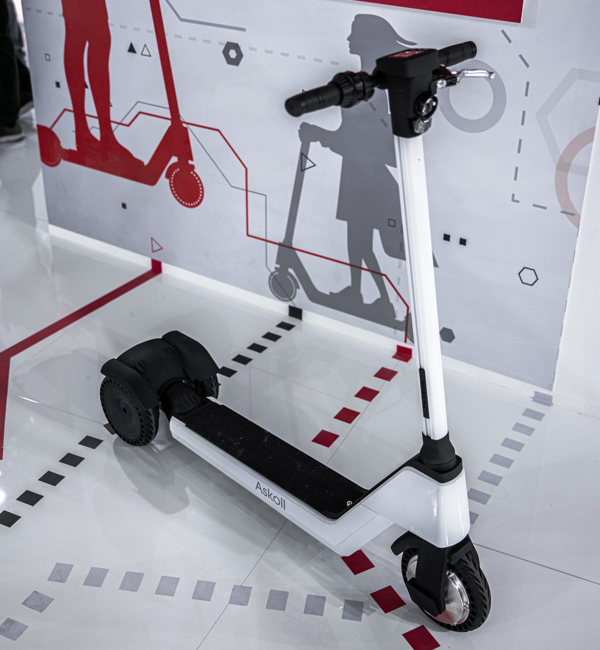 Progettato e sviluppato per la mobilità condivisa e per affrontare anche manti stradali irregolari, eKick è dotato di tre ruote, una anteriore e due posteriori. Il motore elettrico brushless Askoll ad alta efficienza energetica è posizionato nella ruota anteriore ed è alimentato da una batteria agli ioni di litio con una capacità complessiva di 400 Wh e 2,6 kg di peso che garantisce 35 Km di autonomia.Dotato di tracker GPS, telemetria e connettività wireless, è caratterizzato da un design pulito ed elegante: tutti i cavi sono nascosti nel telaio e la batteria, estraibile, è posizionata all’interno della pedana, garantendo così una maggiore stabilità.