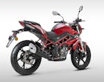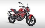 MECCANICA SOLIDALa meccanica della Benelli BN 125 non punta alle prestazioni, anche perché sussistono le note limitazioni di legge alla potenza massima del motore, ma appare solida e robusta: telaio a traliccio in acciaio, forcella con steli rovesciati di 35 mm e al retrotreno il monoammortizzatore con precarico della molla regolabile e corsa di 40 mm. A frenare i bollenti spiriti pensano una pinza a tre pistoncini e il disco a margherita da 260 mm di diametro, assistito dal sistema CBS di frenata combinata. Il motore è monocilindrico di125 cc, raffreddato ad aria e olio (la griglia del radiatore è decorativa), albero a camme in testa, e potenza di 11,1 cv a 9.500 giri, con la coppia che si attesta a 10 Nm. Quanto basta, assicurano in Benelli, a muovere adeguatamente (per un motociclista alle prime armi) i 142 kg in ordine di marcia. Il cambio è a cinque rapporti, i cerchi sono da 17” con pneumatici 110/80 e 130/70. Da subito nelle concessionarie.