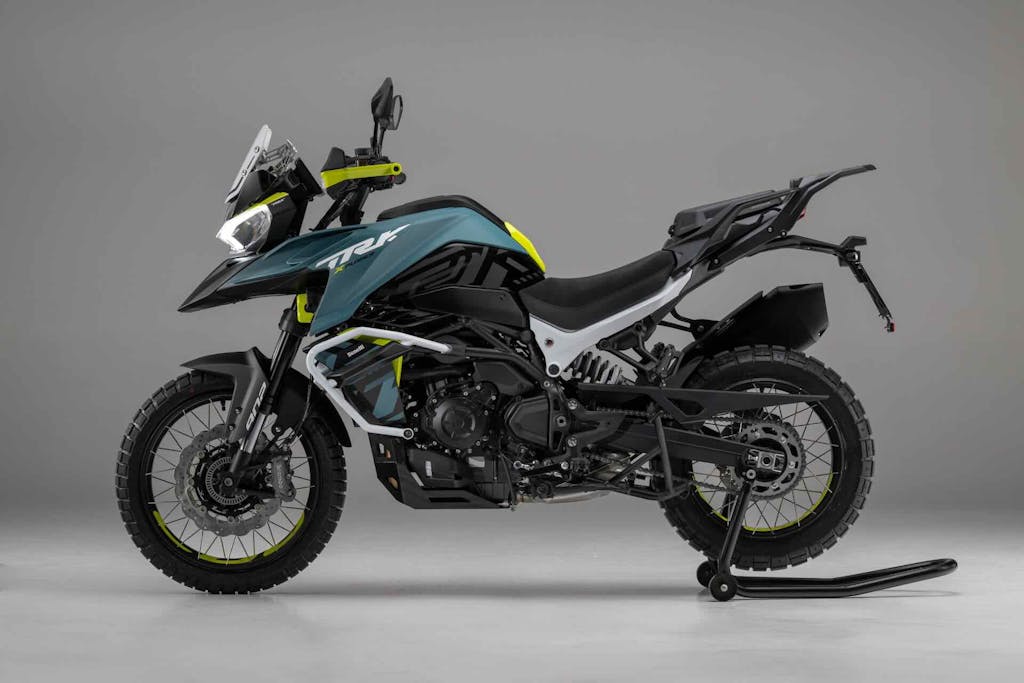 La Xplorer evolve i tratti tipici della famiglia TRK — il becco pronunciato, i fanali a doppia “T”, le proporzioni solide — in una forma più armoniosa e bilanciata. Le maniglie passeggero in nylon rinforzato diventano elementi strutturali integrati, mentre il codino pulito e compatto riflette un design moderno e funzionale.