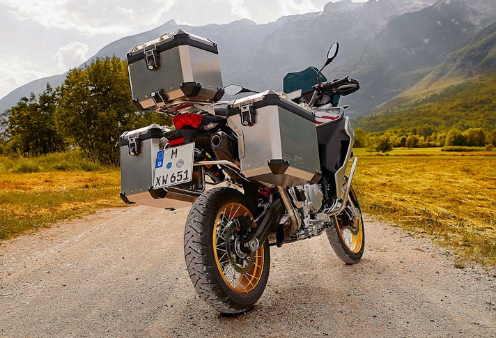 Ritroviamo poi gli stessi temi tecnici affrontati con il lancio della motorizzazione 850. Di serie quindi le mappe Road e Rain e su richiesta le Dynamic, Enduro ed Enduro PRO con quest’ultima in grado di sfruttare l’opzione offroad dell’ABS che disattiva la ruota posteriore e ne permette il bloccaggio in caso di necessità. L’impianto frenante conferma il doppio disco anteriore da 305 mm e posteriore da 265 mm. Nel pacchetto di primo equipaggiamento troviamo un parabrezza regolabile in altezza su due posizioni che dovrebbe migliore sensibilmente la protezione dall’aria rispetto alla versione superslim della sorella standard.Condivise molte scelte tecniche a partire dal display TFT da 6,5 pollici i proiettori luminosi anteriori a LED e l’avviamento Key-less e l’Intelligent Emergency Call per attivare il servizio di soccorso in caso di emergenza.COME VESTIRLAPressoché infinita la gamma di accessori disponibile che parte da quattro basi certe che sono i quattro Package: Comfort, Touring Dynamic e Light a cui aggiungere dettagli per la più curata delle personalizzazioni.Tre colorazioni disponibili. Rallye con base blu che richiama la sportività del marchio, Exclusive in grigio granito metallizzato e Adventure Icegrey in grigio chiaro.