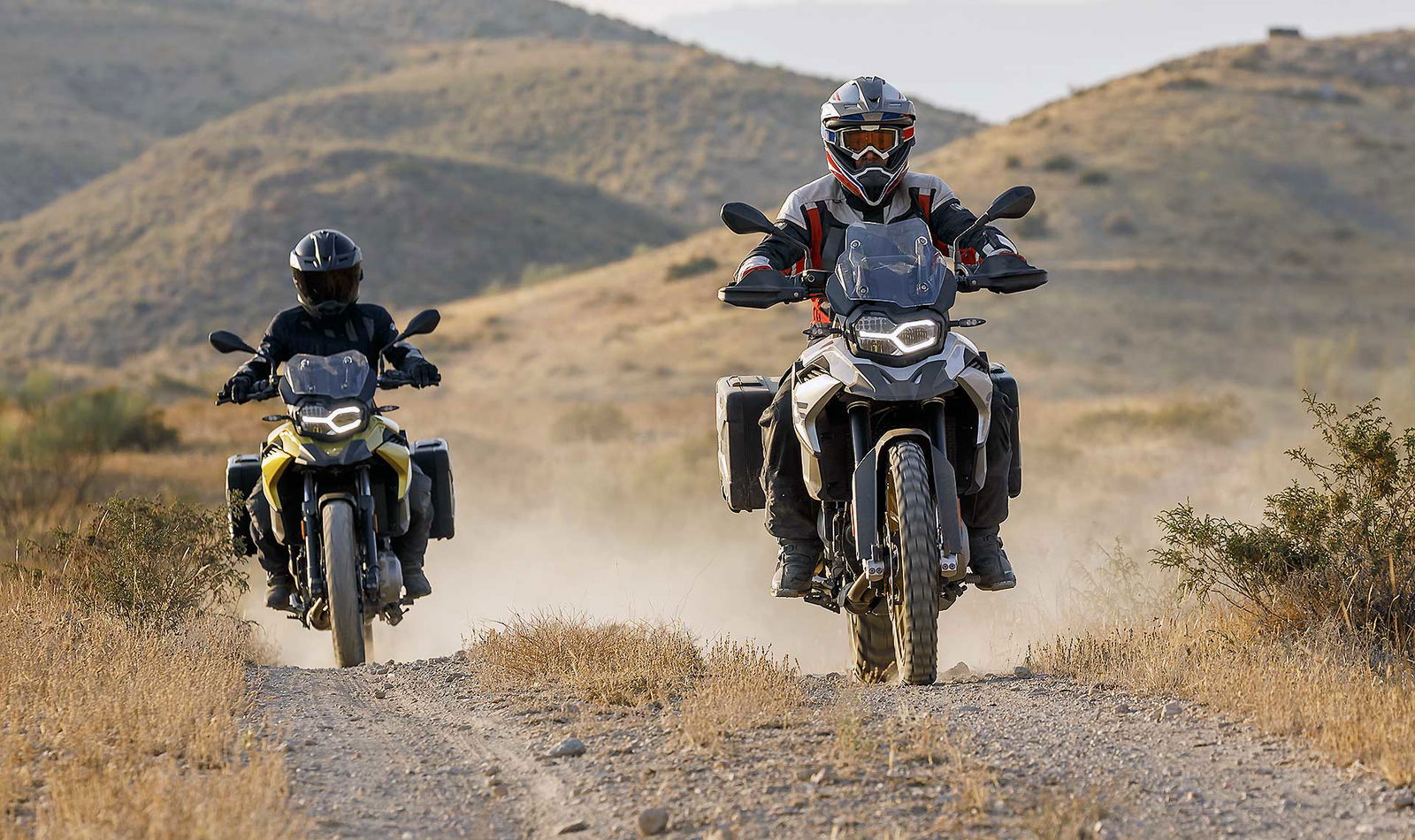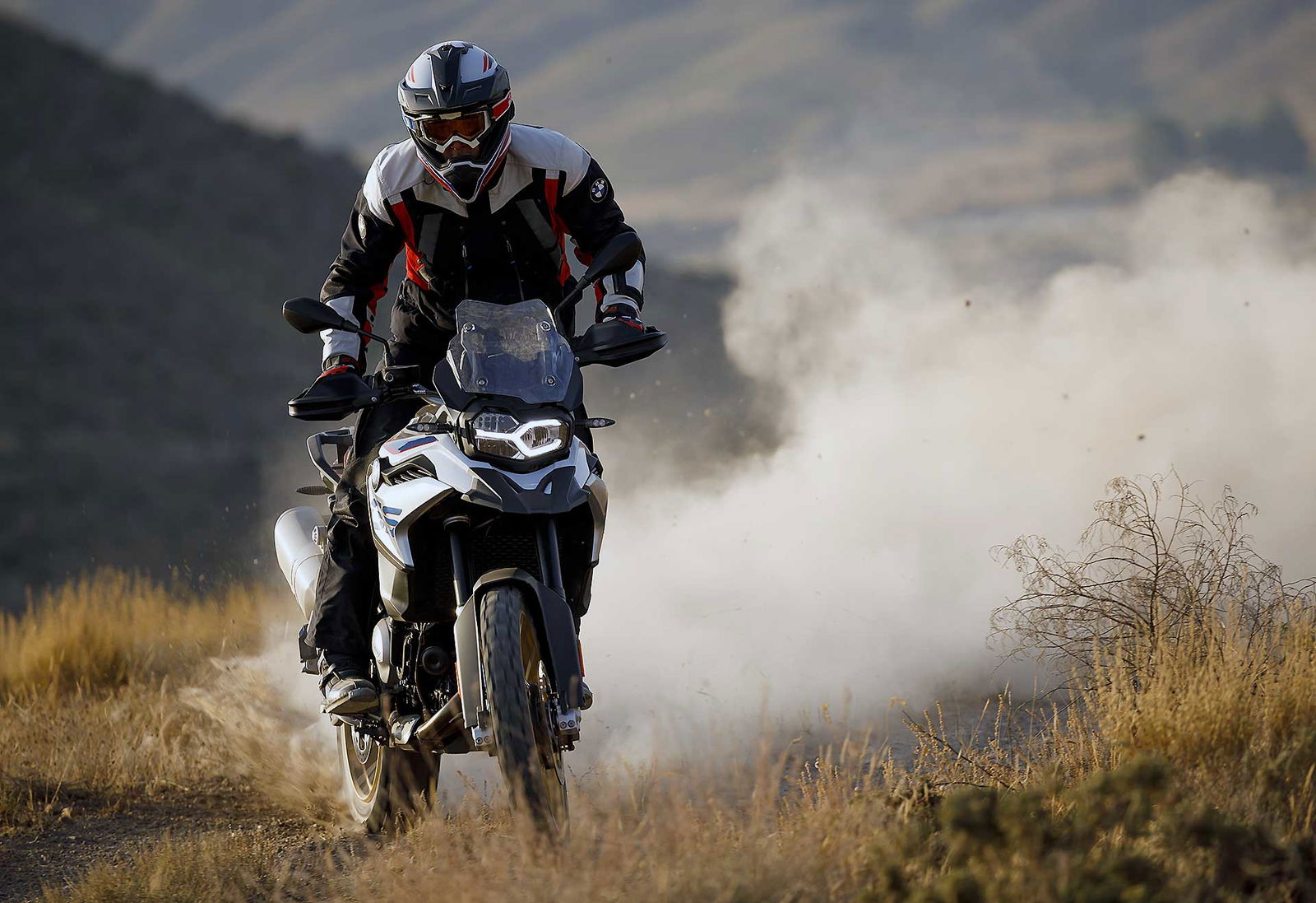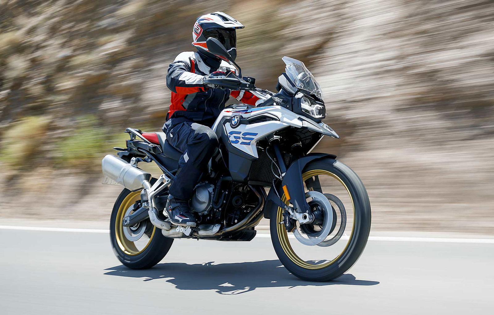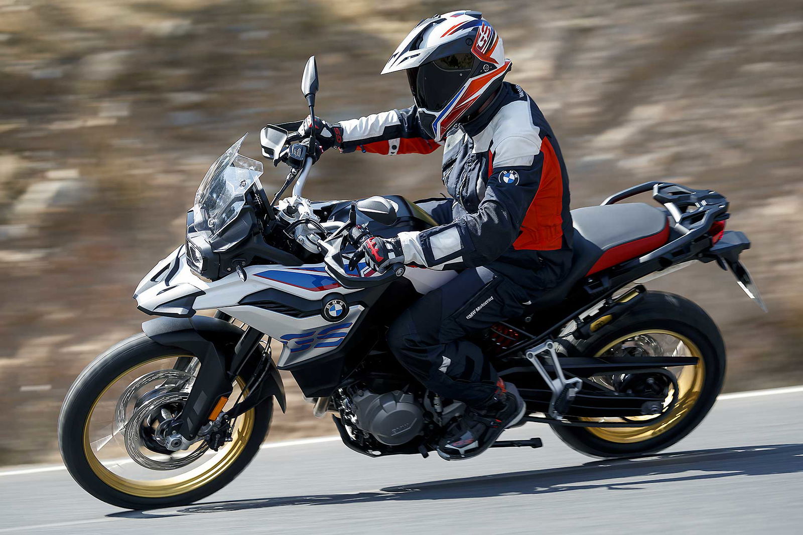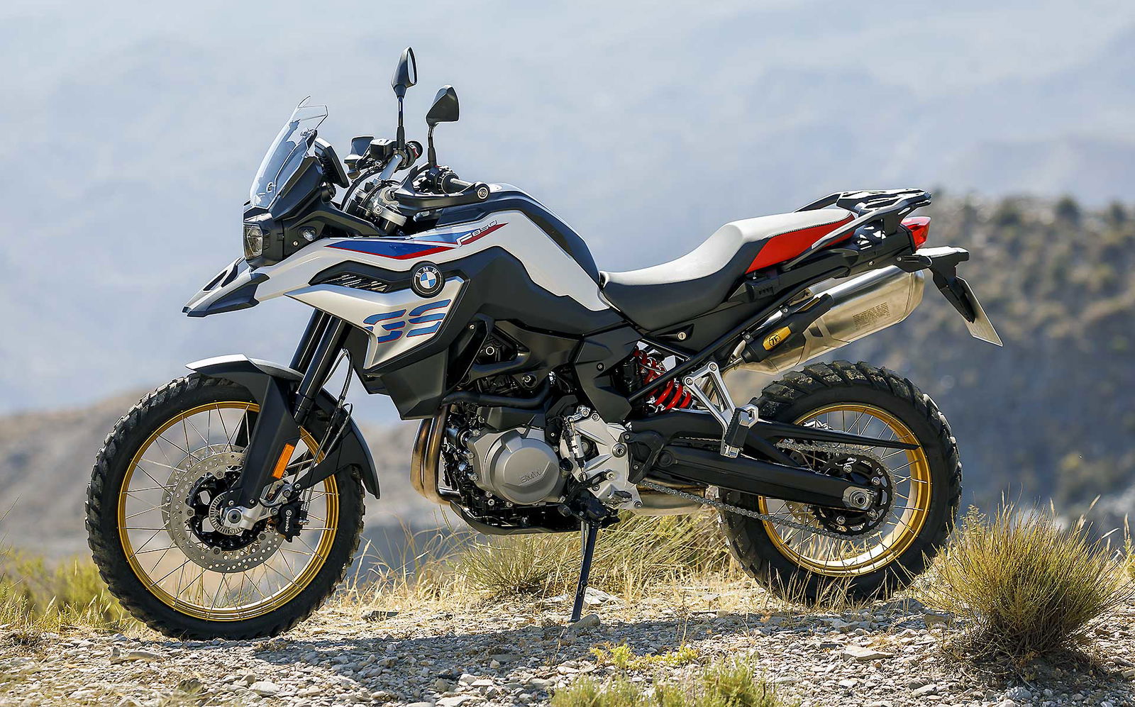 Questo Twin è decisamente moderno ed evoluto, le vibrazioni dovute alla fasatura “irregolare” sono annullate da un doppio contralbero di bilanciamento. Di serie sono previsti due riding mode: Rain e Road. Optional le mappature Dynamic, Enduro e Enduro Pro che adattano anche i livelli di intervento di ABS e Traction Control in questo caso definito ASC Plus.SOSPENSIONI LUNGHERiprogettata anche la ciclistica, il telaio in traliccio di tubi lascia spazio a una struttura perimetrale, sempre in acciaio, abbinata a un nuovo forcellone in alluminio e a nuove sospensioni (la posteriore semiattiva a richiesta, marchiata ZF). La forcella ha steli da 43 mm e ha 204 mm di escursione; 219 i mm di escursione della ruota posteriore a certificare l’attitudine off road della GS 850. Attitudine che dovrebbe essere ulteriormente aumentata visto che ora la GS 850 misure più “aperte” con l’interasse che passa da 1.573 a 1.593 mm, l’inclinazione cannotto da 26° a 28° e l’avancorsa da 117 a 126 mm. Ovviamente confermata l’abbinata 21/17 per le ruote a raggi ora adatte a montare pneumatici tubeless (novità per la GS “piccola”).DOTAZIONI DA GRANDE