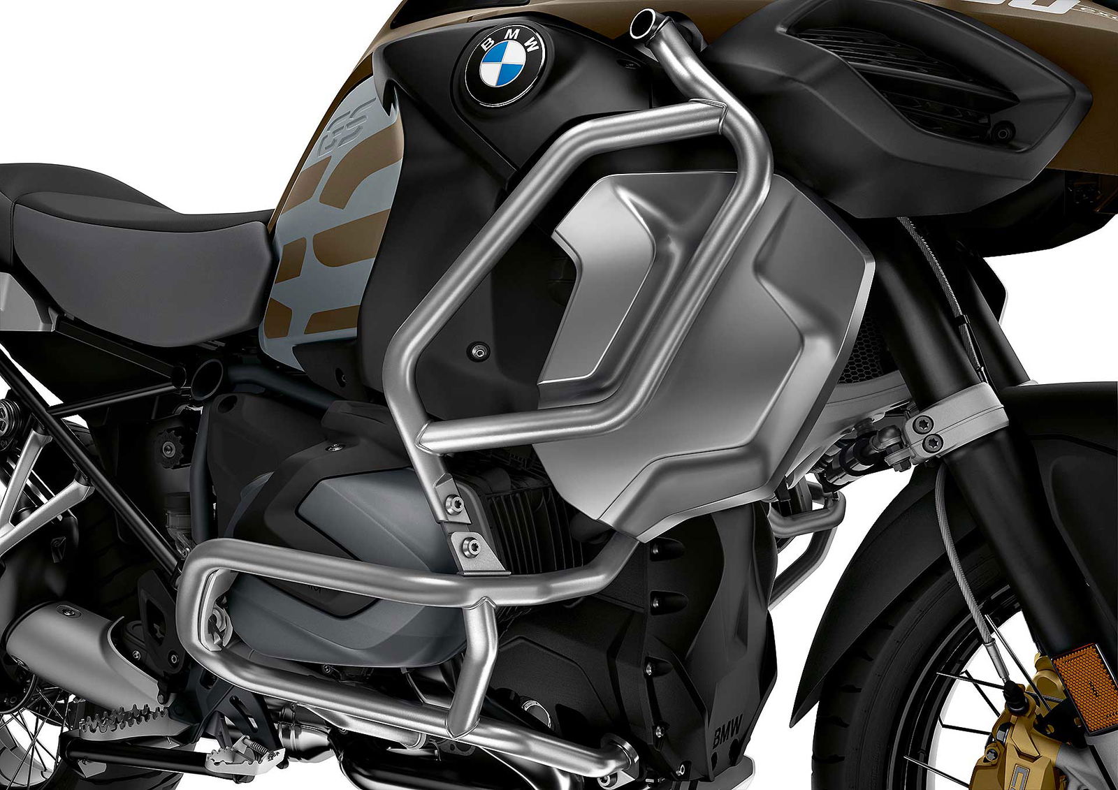 La Adventure conferma il comparto sospensioni a lunga escursione con 210 mm di corsa all’anteriore e 220 mm al posteriore mantenendo saldamente lo schema tecnico del Telelever con steli da 37 mm e dietro il cardano con Paralever e ammortizzatore progressivo WAD regolabile nel precarico e in estensione. Opzionale la regolazione elettrica Dynamic ESA che agisce sia all’anteriore sia al posteriore. Di serie l’ASC Automatic Stability Control e l’indispensabile Hill Start Control che facilita le partenze in salita con moto a pieno carico.Stili di guida