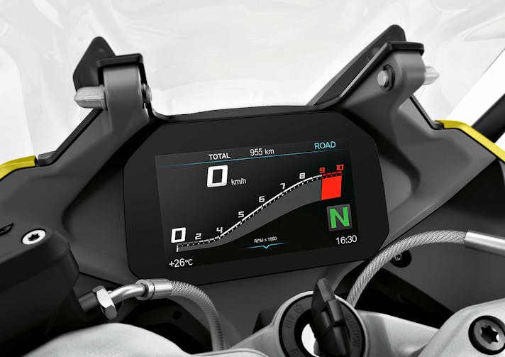 A livello estetico, le novità sono da ricercarsi soprattutto nell’avantreno. La nuova BMW R 1250 RS ha un cupolino dalle linee più affilate e due accigliati fari a Led. Per quanto riguarda l’elettronica, di serie ci sono due modalità di guida (Rain e Road), oltre al controllo automatico della stabilità ASC e l’Hill Start Control, l’assistenza per le partenze in salita. La modalità di guida Pro, optional, include altre modalità di guida che modificano molti parametri, tra cui la mappatura del motore e il controllo di trazione DTC (Dynamic Traction Control), che sfrutta i dati della piattaforma inerziale. Di serie invece ci sono l’ABS Pro e il DBC (Dynamic Brake Control): quest’ultimo ripartisce automaticamente la forza frenante tra anteriore e posteriore in caso di frenata d’emergenza per mantenere stabile l’assetto.Optional sulla BMW R 1250 RS il Dynamic ESA Next Generation. Sono le sospensioni semi-attive che, sfruttando i sensori della piattaforma inerziale, regolano non solo l’idraulica ma anche il precarico del mono in maniera automatica adattandosi al peso. Optional rimangono la chiamata automatica d’emergenza e sella e cerchi del catalogo “Option 719”. La strumentazione TFT a colori con schermo da 6,5 pollici invece è di serie. È disponibile in diverse colorazioni e pacchetti accessori.