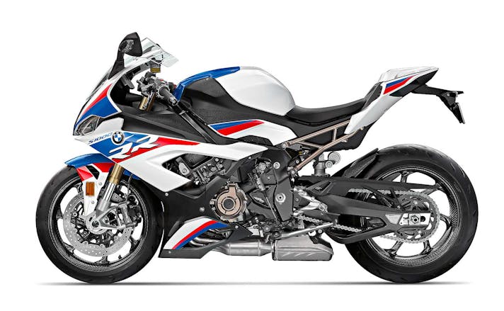 A cambiare completamente sono le misure della moto: la zona di passaggio gambe è strettissima, paragonabile secondo BMW a quella di una moto V4, e cambiano l’inclinazione del cannotto di sterzo, l’avancorsa e l’interasse, che passano rispettivamente da 23,5° a 23,1°, da 96,5 a 93,9 mm, da 1.432 a 1.441mm. Il forcellone è davvero molto lungo con i suoi 606,6 mm. Come si vede BMW ha ideato una moto con quote di sterzo estreme, ma lunga di interasse come vuole la tendenza attuale, che va alla ricerca di maneggevolezza estrema e trazione meccanica.La forcella perde 1 mm nel diametro steli (da 46 a 45), mentre le sospensioni semi attive – c’è la possibilità di averle meccaniche – giungono alla terza generazione e sfruttano una logica di funzionamento e un hardware completamente differenti, che consentono una regolazione più precisa in modalità Race.RUOTE LEGGERE