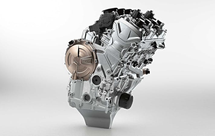 Non è solo la testata a essere stata riprogettata: tutto il motore è nuovo, dal primo all’ultimo bullone, tanto è vero che è dimagrito di ben 4 kg, alleggerimento che ha contribuito, insieme a tutti gli altri componenti, a far scendere il peso della S 1000 RR di ben 10 kg. Ora sono 197 i kg dichiarati, in ordine di marcia, con il pieno di benzina. Peso che cala ancora con il pacchetto “M Package”, che utilizza i cerchi in carbonio della HP4 Race, fermando la bilancia a 193,5 kg.QUANTI CAVALLI?