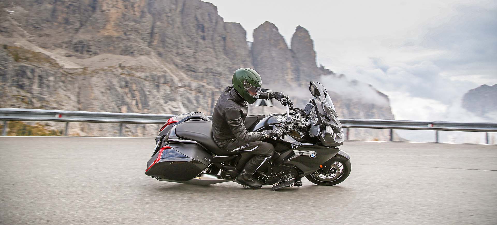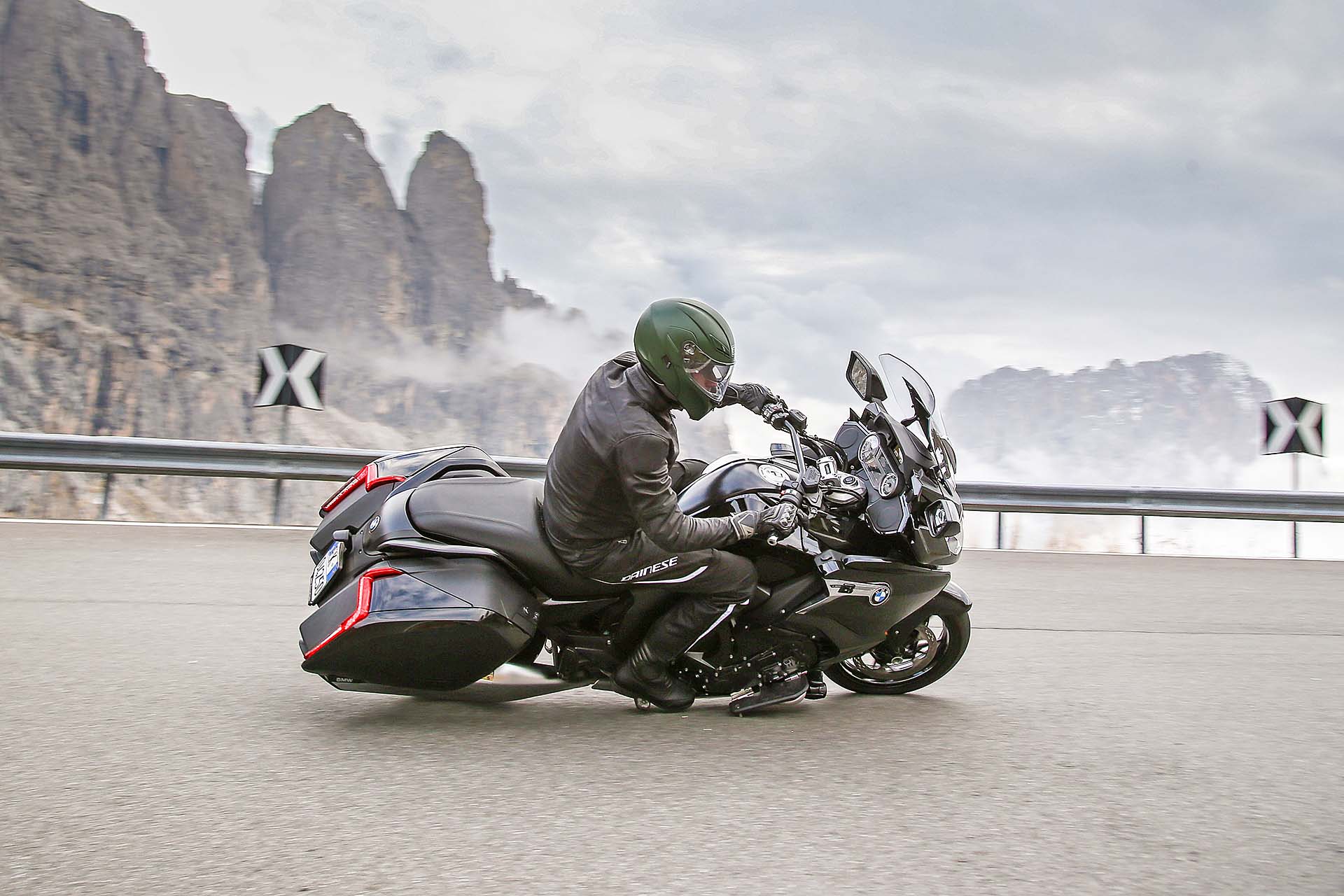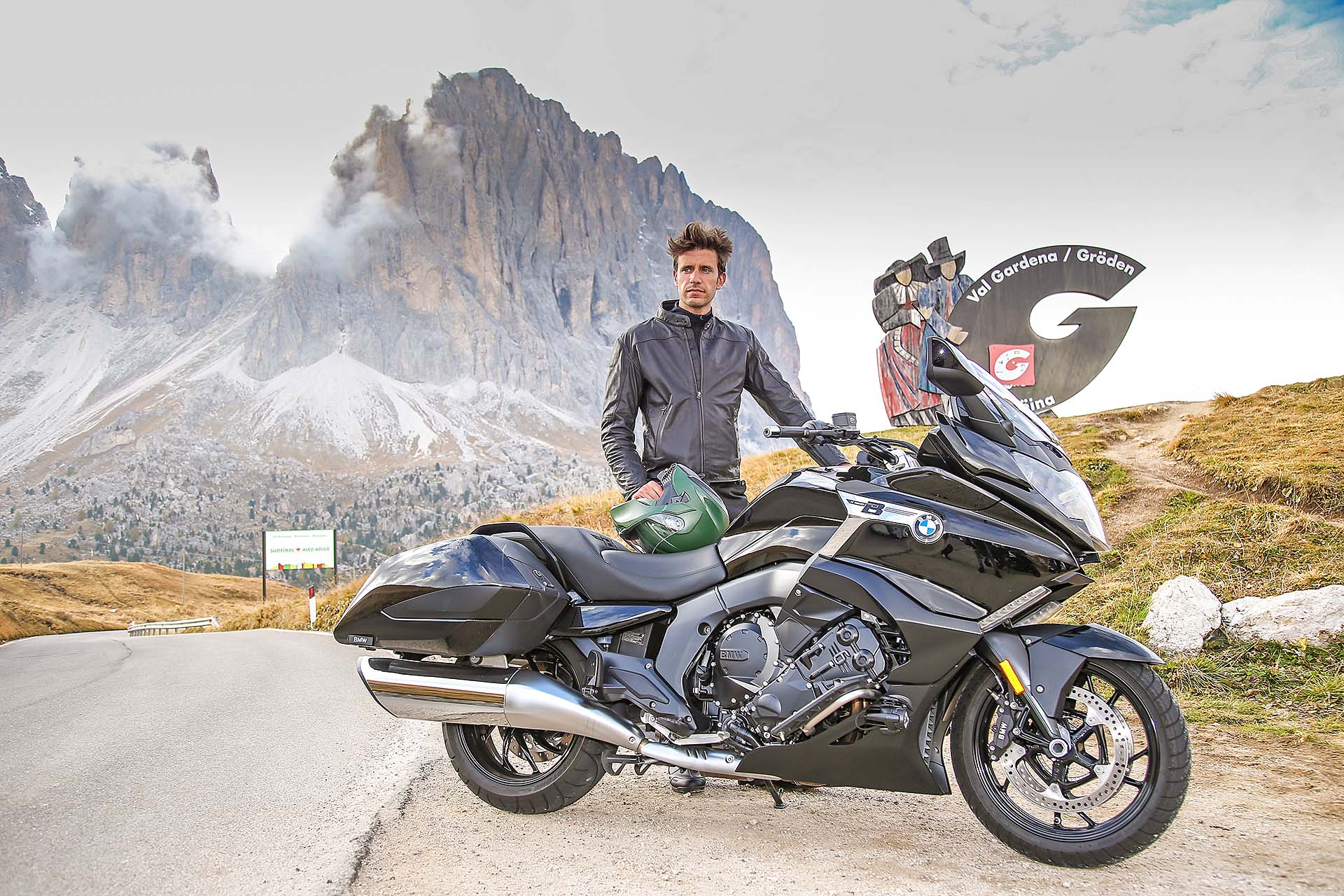 LA MOTOHo quasi finito di stivare tutto in valigia. Sono in partenza per un lungo viaggio chiamato BMW Tour Experience: 6 stati europei in 6 giorni, una tirata da niente per la moto che ho a disposizione. Chiamarla semplicemente “moto” è riduttivo: la BMW K 1600 B è tra le tourer da crociera più complete che esistano al mondo. Più nera della notte (e disponibile solo in questa colorazione), di fatto è una K 1600 GT (stesso motore 6 cilindri in linea da 160 cv e 175 Nm), a cui però BMW ha voluto dare un piglio più radicale, USA oriented (B sta per Bagger).COME HANNO FATTO?L’hanno fatto innanzitutto con la nuova coda, rifatta da zero, e con le borse laterali basse, che integrano tra l’altro il gruppo ottico posteriore. Il cupolino è più raccolto, la sella decisamente più bassa (780 mm, che per controllare i 336 kg in ordine di marcia sono un bell’aiuto) grazie al nuovo telaietto, i terminali di scarico abbassati e cromati. Non mancano le pedane avanzate per rilassare i piedi nelle lunghe sgroppate autostradali e la comoda retromarcia. Oltre, ovviamente, a tutta l’elettronica di bordo, che comprende Riding Mode, cambio elettroassistito Pro (funziona anche in scalata) e sospensioni semi-attive Dynamic Esa, da impostare su Road o Cruise, con la seconda modalità che privilegia il comfort. Serve altro? Certo, la radio. Che ovviamente c’è.DOVE SI VA?Il giro: la prima tappa del BMW Tour Experience prevede la partenza dal concessionario BMW di Bussolengo (Verona) con destinazione Innsbruck, Austria. Non c’è solo autostrada: la Bagger è una nave da crociera autostradale, vero, ma è anche una moto che si guida. I passi dolomitici sono il primo banco di prova. A Bolzano Nord si esce per arrivare a Canazei e successivamente a Ortisei, percorrendo passi celebri come il Sella e il Gardena. Con me ci saranno i due fortunati vincitori del concorso istituito da BMW, Riccardo e Fabrizio, molto curiosi di guidare la nuova K 1600 B.Segui il tour:Day 1, da Verona a InnsbruckDay 2, da Innsbruck a MonacoDay 3, da Monaco a VaduzDay 4, da Vaduz a LucernaDay 5, da Lucerna a GrenobleDay 6, da Grenoble a Milano DAY 1, DA VERONA A INNSBRUCKPRONTI, VIA!Il nostro terzetto parte per il BMW Tour Experience poco prima dell’ora di pranzo, per una “pinta” da circa 130 km di autostrada. Che la K 1600 B “beve” come un assetato a un pozzo. La posizione di guida è ancora più comoda della già rilassante GT : la schiena rimane meno eretta, le pedane per appoggiare i piedi bene in avanti sono un plus niente male. Nel frattempo Riccardo e Fabrizio rimangono stregati dal motore e dalla guida, come mi confermano al primo Autogrill: “Davvero impressionante il motore! Potente ma gestibilissimo, accelera forte senza dare nemmeno l’impressione di farlo. E la sua guida! Se devo essere sincero ero un po’ intimorito prima di provarla, con tutti quei chili, ma ora devo dire che è stabilissima e allo stesso tempo agile. Come hanno fatto?”. Sono parole loro. Se a questo si aggiunge l’ottima protezione dall’aria – il plexiglas non è avvolgente come sulla GT ma si può regolare in altezza tramite il comando elettrico -, la totale assenza di vibrazioni, il cruise control e le manopole riscaldabili, non è difficile immaginare il livello di comfort che questa moto può garantire su una… highway, per dirla nella lingua della bagger.DAI CHE SI PIEGAIl BMW Tour Experience procede, arrivano le Dolomiti e con loro le curve dei passi alpini più belli del mondo. La K 1600 B le disegna con il pennello, scendendo in piega con una grazia e una leggerezza disarmanti. Precisa e molto stabile, non è (ovviamente) un fulmine a chiudere le curve ma è sempre molto sincera e attaccata all’asfalto. Merito del baricentro basso e delle sospensioni ben accordate. Il motore è glorioso: sotto i 5.000 giri è forte ma mansueto, oltre tale regime i 6 pistoni si scatenano in un urlo maestoso, proiettandosi in un allungo infinito. Meglio tenere tutti questi cavalli per le Autobahn tedesche che affronteremo domani.ARRIVO IN CITTÀ La prima tappa del BMW Tour Experience è terminata: arriviamo a Innsbruck accompagnati da una pioggerella fastidiosa. Non che la K 1600 B ne soffra: rimane facile da gestire anche su asfalti bagnati. Il traffico della città non è il suo ambiente, ma riusciamo ad arrivare in albergo senza troppe difficoltà. Parcheggio, bagagli, doccia al volo e via a cena: mentre trangugiamo un piatto tipico austriaco (che ha un nome con troppe consonanti), ripassiamo l’itinerario di domani. E ridiamo felici. Poi guardiamo il meteo. E non ridiamo più…Ecco l’itinerario che abbiamo seguito: DAY 2, DA INNSBRUCK A MONACOTEMPO DI EMMEBMW K 1600 B innsbruckÈ mattina presto, le 07:30 circa, quando la sveglia suona crudele. Devo partire per la seconda tappa del BMW Tour Experience. Stropicciando gli occhi mi alzo e cammino verso la tenda della finestra. La scosto e… scopro un tempo peggiore anche delle previsioni meteo di ieri. Piove con insistenza e il cielo è grigio cenere. La BMW K 1600 B è mi aspetta in garage e so che farà di tutto per coccolarmi come un re: con questo tempo, accessori come le manopole e la sella riscaldabili, il plexiglass regolabile in altezza e un buon impianto audio possono svoltarti la giornata.FERNPASSTra l’altro oggi la strada del BMW Tour Experience non è niente male: dopo la partenza da Innsbruck, imposteremo il navigatore su Passo di Fern, un vero e proprio toboga con asfalto molto grippante. Destinazione finale: Monaco di Baviera, dove ci aspetta una visita al museo BMW e qualche birra la sera, che berremo rigorosamente all’Oktoberfest. Sono un po’ perplesso per via del tempo che non accenna a migliorare, Riccardo e Fabrizio invece pare non vedano l’ora di gettarsi nel diluvio. “Ma dai, tanto con la K 1600 B siamo nel burro!”. E allora, andiamo!MANI AL CALDOBMW K 1600 B autobahnDopo pochi chilometri di autostrada sotto una pioggia battente, la