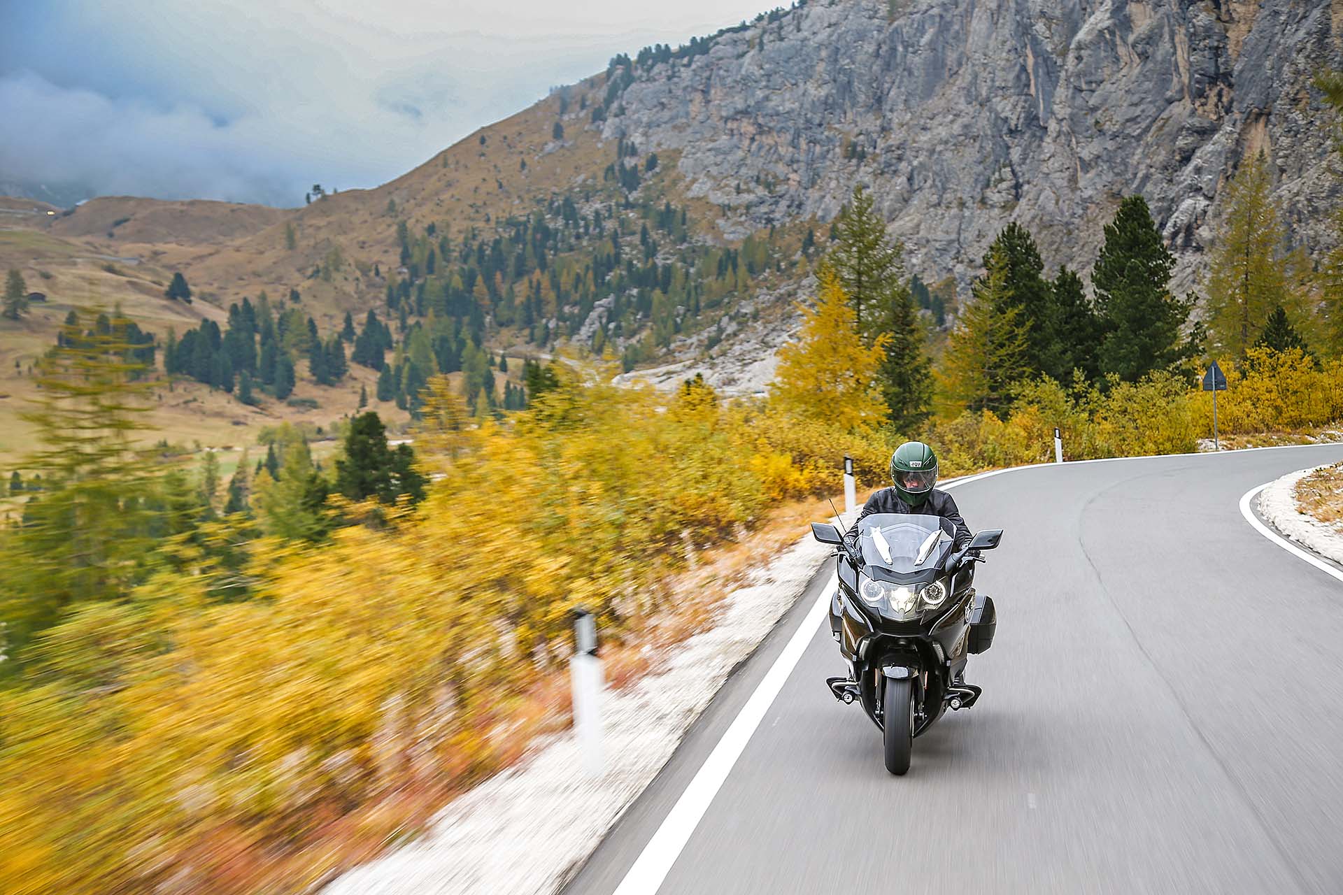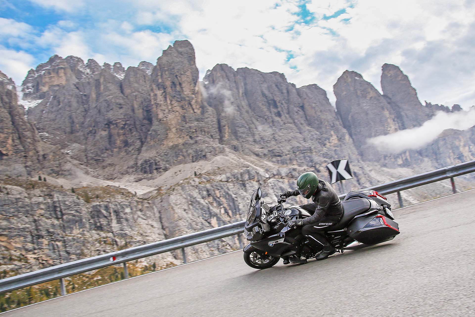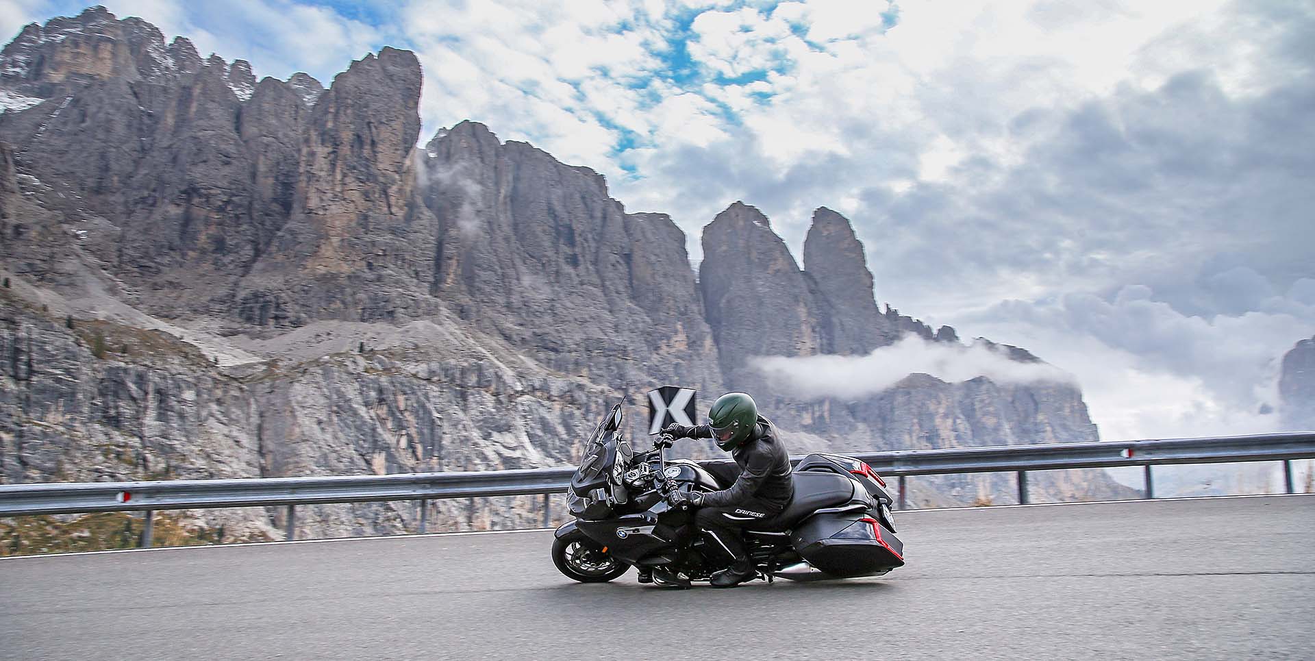 LA MOTOHo quasi finito di stivare tutto in valigia. Sono in partenza per un lungo viaggio chiamato BMW Tour Experience: 6 stati europei in 6 giorni, una tirata da niente per la moto che ho a disposizione. Chiamarla semplicemente “moto” è riduttivo: la BMW K 1600 B è tra le tourer da crociera più complete che esistano al mondo. Più nera della notte (e disponibile solo in questa colorazione), di fatto è una K 1600 GT (stesso motore 6 cilindri in linea da 160 cv e 175 Nm), a cui però BMW ha voluto dare un piglio più radicale, USA oriented (B sta per Bagger).COME HANNO FATTO?L’hanno fatto innanzitutto con la nuova coda, rifatta da zero, e con le borse laterali basse, che integrano tra l’altro il gruppo ottico posteriore. Il cupolino è più raccolto, la sella decisamente più bassa (780 mm, che per controllare i 336 kg in ordine di marcia sono un bell’aiuto) grazie al nuovo telaietto, i terminali di scarico abbassati e cromati. Non mancano le pedane avanzate per rilassare i piedi nelle lunghe sgroppate autostradali e la comoda retromarcia. Oltre, ovviamente, a tutta l’elettronica di bordo, che comprende Riding Mode, cambio elettroassistito Pro (funziona anche in scalata) e sospensioni semi-attive Dynamic Esa, da impostare su Road o Cruise, con la seconda modalità che privilegia il comfort. Serve altro? Certo, la radio. Che ovviamente c’è.DOVE SI VA?Il giro: la prima tappa del BMW Tour Experience prevede la partenza dal concessionario BMW di Bussolengo (Verona) con destinazione Innsbruck, Austria. Non c’è solo autostrada: la Bagger è una nave da crociera autostradale, vero, ma è anche una moto che si guida. I passi dolomitici sono il primo banco di prova. A Bolzano Nord si esce per arrivare a Canazei e successivamente a Ortisei, percorrendo passi celebri come il Sella e il Gardena. Con me ci saranno i due fortunati vincitori del concorso istituito da BMW, Riccardo e Fabrizio, molto curiosi di guidare la nuova K 1600 B.Segui il tour:Day 1, da Verona a InnsbruckDay 2, da Innsbruck a MonacoDay 3, da Monaco a VaduzDay 4, da Vaduz a LucernaDay 5, da Lucerna a GrenobleDay 6, da Grenoble a Milano DAY 1, DA VERONA A INNSBRUCKPRONTI, VIA!Il nostro terzetto parte per il BMW Tour Experience poco prima dell’ora di pranzo, per una “pinta” da circa 130 km di autostrada. Che la K 1600 B “beve” come un assetato a un pozzo. La posizione di guida è ancora più comoda della già rilassante GT : la schiena rimane meno eretta, le pedane per appoggiare i piedi bene in avanti sono un plus niente male. Nel frattempo Riccardo e Fabrizio rimangono stregati dal motore e dalla guida, come mi confermano al primo Autogrill: “Davvero impressionante il motore! Potente ma gestibilissimo, accelera forte senza dare nemmeno l’impressione di farlo. E la sua guida! Se devo essere sincero ero un po’ intimorito prima di provarla, con tutti quei chili, ma ora devo dire che è stabilissima e allo stesso tempo agile. Come hanno fatto?”. Sono parole loro. Se a questo si aggiunge l’ottima protezione dall’aria – il plexiglas non è avvolgente come sulla GT ma si può regolare in altezza tramite il comando elettrico -, la totale assenza di vibrazioni, il cruise control e le manopole riscaldabili, non è difficile immaginare il livello di comfort che questa moto può garantire su una… highway, per dirla nella lingua della bagger.DAI CHE SI PIEGAIl BMW Tour Experience procede, arrivano le Dolomiti e con loro le curve dei passi alpini più belli del mondo. La K 1600 B le disegna con il pennello, scendendo in piega con una grazia e una leggerezza disarmanti. Precisa e molto stabile, non è (ovviamente) un fulmine a chiudere le curve ma è sempre molto sincera e attaccata all’asfalto. Merito del baricentro basso e delle sospensioni ben accordate. Il motore è glorioso: sotto i 5.000 giri è forte ma mansueto, oltre tale regime i 6 pistoni si scatenano in un urlo maestoso, proiettandosi in un allungo infinito. Meglio tenere tutti questi cavalli per le Autobahn tedesche che affronteremo domani.ARRIVO IN CITTÀ La prima tappa del BMW Tour Experience è terminata: arriviamo a Innsbruck accompagnati da una pioggerella fastidiosa. Non che la K 1600 B ne soffra: rimane facile da gestire anche su asfalti bagnati. Il traffico della città non è il suo ambiente, ma riusciamo ad arrivare in albergo senza troppe difficoltà. Parcheggio, bagagli, doccia al volo e via a cena: mentre trangugiamo un piatto tipico austriaco (che ha un nome con troppe consonanti), ripassiamo l’itinerario di domani. E ridiamo felici. Poi guardiamo il meteo. E non ridiamo più…Ecco l’itinerario che abbiamo seguito: DAY 2, DA INNSBRUCK A MONACOTEMPO DI EMMEBMW K 1600 B innsbruckÈ mattina presto, le 07:30 circa, quando la sveglia suona crudele. Devo partire per la seconda tappa del BMW Tour Experience. Stropicciando gli occhi mi alzo e cammino verso la tenda della finestra. La scosto e… scopro un tempo peggiore anche delle previsioni meteo di ieri. Piove con insistenza e il cielo è grigio cenere. La BMW K 1600 B è mi aspetta in garage e so che farà di tutto per coccolarmi come un re: con questo tempo, accessori come le manopole e la sella riscaldabili, il plexiglass regolabile in altezza e un buon impianto audio possono svoltarti la giornata.FERNPASSTra l’altro oggi la strada del BMW Tour Experience non è niente male: dopo la partenza da Innsbruck, imposteremo il navigatore su Passo di Fern, un vero e proprio toboga con asfalto molto grippante. Destinazione finale: Monaco di Baviera, dove ci aspetta una visita al museo BMW e qualche birra la sera, che berremo rigorosamente all’Oktoberfest. Sono un po’ perplesso per via del tempo che non accenna a migliorare, Riccardo e Fabrizio invece pare non vedano l’ora di gettarsi nel diluvio. “Ma dai, tanto con la K 1600 B siamo nel burro!”. E allora, andiamo!MANI AL CALDOBMW K 1600 B autobahnDopo pochi chilometri di autostrada sotto una pioggia battente, la