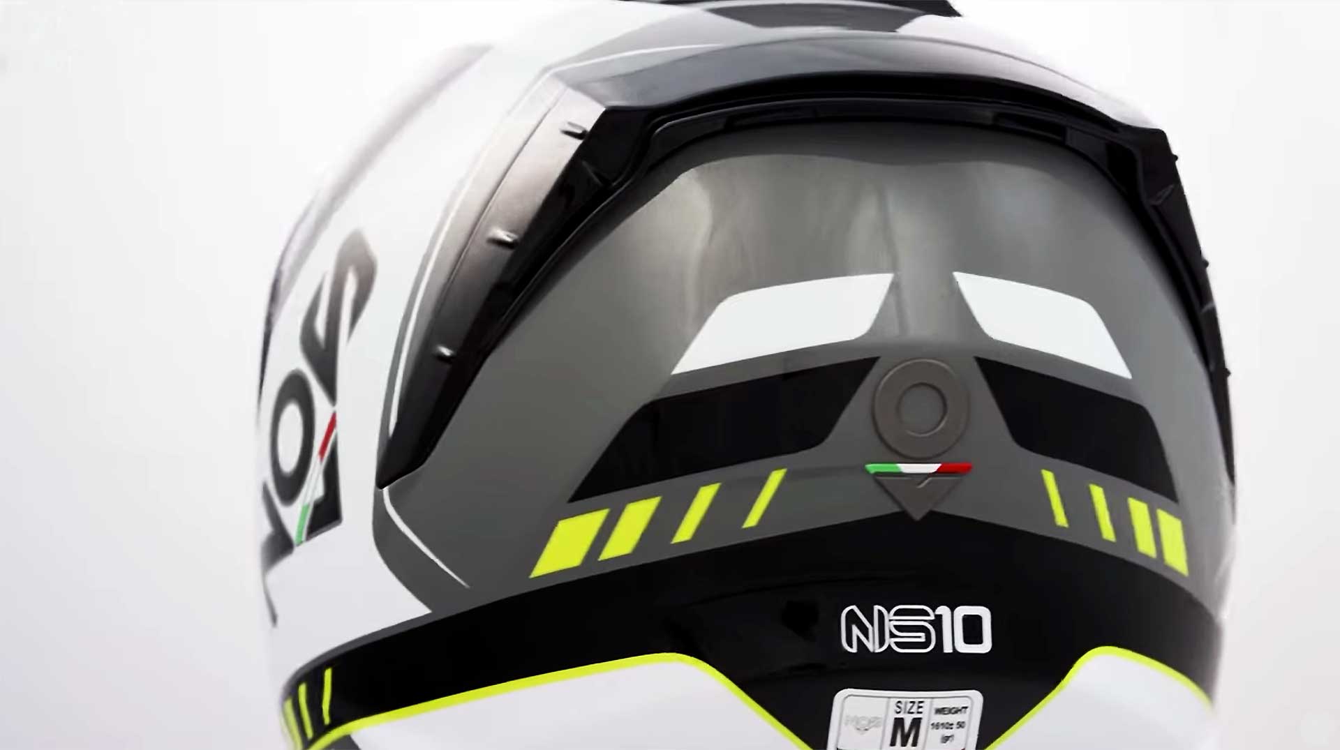 Il sistema ideato da NOS si chiama MACH-Efficiency 2. Sono ben quattro le prese d’aria frontali: quella sulla mentoniera ha tre posizioni per modulare il flusso d’aria. Sulla calotta sono presenti una larga presa d’aria centrale e due prese d’aria laterali. La prima si apre e chiude con un movimento in senso longitudinale, ha un estrattore posto nella zona superiore del casco ed è regolabile su due posizioni. Le altre due sfruttano un piccolo cursore, non molto facile da azionare.