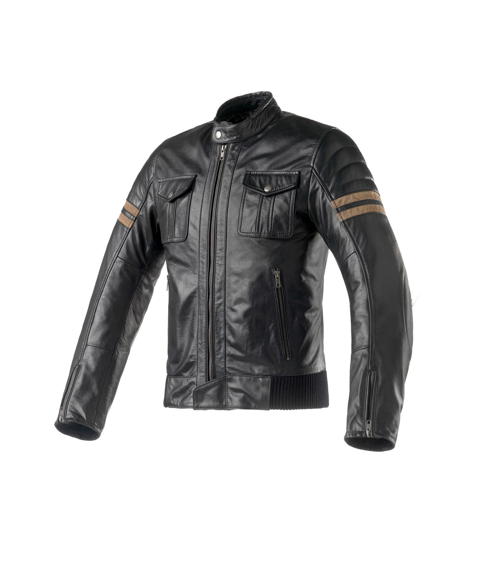 È un classico che sopravvive ai centrifugati fashion e riesce con semplicità a non far sfigurare chi lo indossa, anche quando moto e scooter rimangono parcheggiati. E se si aggiunge la mano esperta di Clover che interviene nella scelta di materiali e dettagli ricercati, il gioco è fatto. Si presenta con questo biglietto da visita l’inedita Blackstone, giacca in pelle invecchiata creata in sintonia con il mondo delle Modern Classic. In area schiena e fondo giacca Clover ha nascosto con eleganza morbidi soffietti elasticizzati, posizionati per favorire l’aderenza al corpo senza stringere e per tenere lontani gli spifferi d’aria. La Blackstone ha un taglio corto ed è presente nel catalogo 2018 del marchio italiano in due tipologie di pellame: bufalo per le versioni Brown e Black e agnello per l’inedito colore Olive. La sicurezza in zona spalle e gomiti è demandata a imbottiture e protezioni “CE” omologate di Livello 1, alle quali si aggiunge la predisposizione per alloggiare un paraschiena “CE” di Livello 1 o Livello 2. Tasche frontali e interne si abbinano a sistemi di regolazione del comfort, come zip e tessuti elasticizzati. Il pattern scelto per la fodera interna accresce invece il fattore eleganza della giacca. La Blackstone è disponibile nelle taglie dalla 48 alla 60, a un prezzo di 369,90 euro.