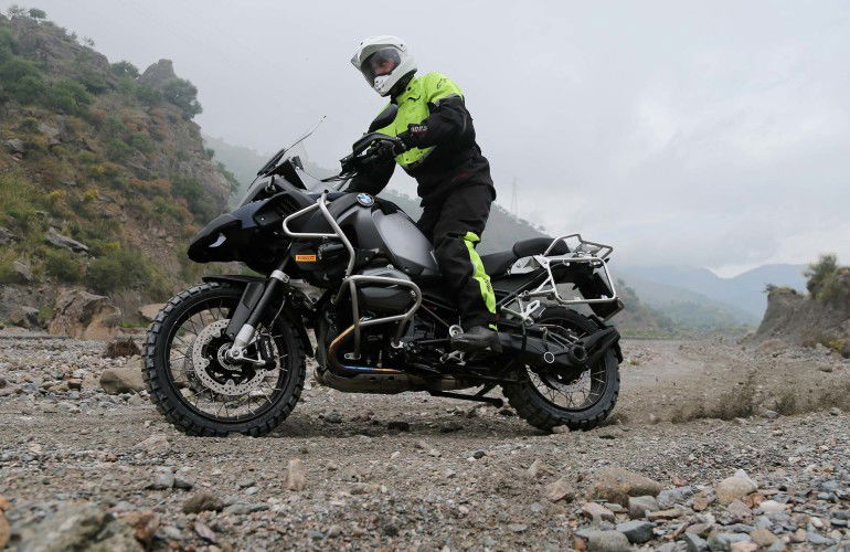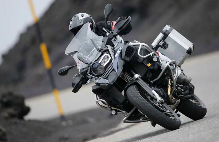 Il prodotto c’è e va ben oltre la questione “aspirazionale” che fa sognare di attraversare l’Atacama anche se la stai guidando in città con la scarpa lucida e l’immancabile borsa laterale singola. La vedi e t’impressiona, perché è grande, enorme e pesa (275 kg in ordine di marcia, senza le borse laterali sulla nostra bilancia). Muoverla a motore spento può imbarazzare, la sella è alta, la più alta di tutte (910/890), ma è ben svasata per cui alla fine il piede a terra ci arriva. Sollevarla dal cavalletto laterale impone un certo sforzo, soprattutto se s’immagina di muoverla con le borse piene ben oltre i 5 kg (ma BMW consiglia un limite a 10 kg e una velocità di 180 orari) con cui le abbiamo appesantite noi. Insomma non è una moto per debolucci. Una volta in sella però la posizione è ottimale, l’angolo delle gambe perfetto, il manubrio largo. Il miracolo si compie quando inizi a muoverti.Il baricentro favorevole offerto dal motore Boxer regala un bilanciamento e un feeling di guida immediati, eccellenti, in questo la Adventure è la numero uno. Bastano pochi metri per sentirla tua e iniziare a guidare veloci. Molto veloci, perché nel misto la GS convince, si muove rapida tra le curve scende veloce in piega altrettanto veloce (ma con un pizzico d’inerzia in più della KTM che è molto più leggera) ne risale, e piega in modo impressionante dimostrando perfetta sintonia con le Pirelli Scorpion Trail II che, anzi, ne migliorano anche la “presenza di sterzo” che per qualcuno è il punto debole di questo tipo particolare di sospensione. Telelever e Paralever sono sempre oggetto di discussione, ma sono utilissimi a tenere la moto “piatta” in ogni situazione, e a far sì che la GS 1200 Adventure sia la moto che meno di tutte accusa carico e/o passeggero a bordo.La guidi da solo con la stessa efficacia di quando la guidi in due con le borse piene, e questo credete non è poco. Parliamo di comfort e qui la GS sale in cattedra, le selle di pilota e passeggero non sono le più larghe (la Ducati ha una maggior area di appoggio) ma sono le più comode come imbottiture, gli appigli per il passeggero sono tondi e al posto giusto, la protezione aerodinamica la migliore del lotto e il boxer è il motore che vibra meno di tutti anche a velocità di crociera che possono arrivare fino ai 180 orari, con solo la sensazione di un manubrio che alle alte velocità tende ad alleggerirsi più di quello della Multistrada che invece alle alte velocità è granitica. Poi, quando il motore lavora nella zona alta del contagiri, le vibrazioni arrivano, ma stiamo viaggiando già oltre 200. Faccio rientrare alla voce comfort anche la capacità di salire in sella del passeggero (la migliore) e la facilità di montaggio e smontaggio delle borse laterali (la migliore), borse che tra l’altro sono le più leggere tra le tre moto (11,6 kg la coppia). Quanto a prestazioni il boxer cede strada alle concorrenti che hanno 35 cv in più, sempre che per voi una moto di queste che fila a 220 orari sia una moto lenta…