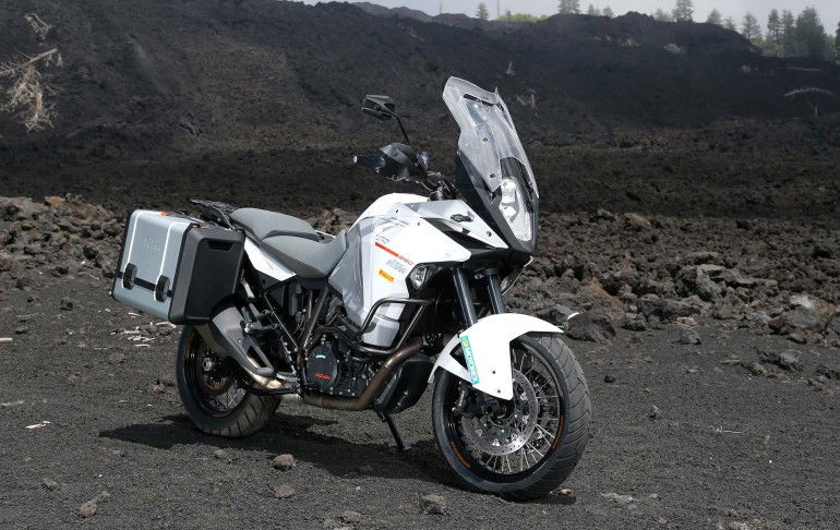 Sono sportivi, sono “cattivi”. Sono Ready To Race. Adesso sanno anche viaggiare, e bene. Per KTM l’atterraggio nel segmento delle enduro da viaggio è stato caratterizzato da una lunga planata, partita dai deserti della Dakar per arrivare sull’asfalto. La 1290 Super Adventure rappresenta l’ultimo capitolo, il più “raffinato”, ed evoluto di sempre nella famiglia KTM. È in assoluto la maxi enduro più completa sul mercato e offre praticamente tutto di serie (compresa la sella del passeggero riscaldata), lasciando come optional solo le borse laterali, l’Hill Hold Control e il Motor Slip Regulation, sistema che apre leggermente le farfalle in rilascio per migliorare la gestione del freno motore e dare una mano alla frizione antisaltellamento.DuelCometeenduromai-007Il resto è tutto compreso (borse escluse) nei 18.640 euro. Come rapporto tra contenuti tecnici e prezzo la KTM non si batte, infatti è la best seller della famiglia Adventure con 144 pezzi venduti finora. Prezzo a parte i punti di forza che la Super Adventure mette sfacciatamente sul tavolo sono più di uno: la facilità di gestione, innanzitutto. Delle tre è quella che impressiona e che inibisce meno, pur essendo indubbiamente una moto “importante”: alla fine è una moto più “normale” e meno mastodontica delle altre due, consigliabile a chi non ha il fisico da corazziere. Merito delle misure compatte e della capacità dei tecnici di Mattighofen di nascondere alla grande un peso che, in ogni caso, resta nettamente inferiore alle rivali: 258 kg con il pieno e senza borse, ossia 17 e 19 kg in meno rispetto a GS e Multistrada. La sella si regola su due altezze (di serie) e quando è regolata nella posizione più bassa (860 mm, l’altra altezza è 875) fa della KTM una misura d’uomo normale, anche perché la sella è stretta e i piedi poggiano molto bene a terra.Complessivamente la 1290 è più raccolta delle altre due: anche il manubrio è più stretto (ben 10 cm in meno rispetto a Ducati e BMW, 80 contro 90) e in KTM hanno lavorato molto bene a livello di serbatoio, portando i 30 litri di benzina quanto più in basso possibile. Alla fine, quindi, la sintesi: se con BMW e Ducati hai chiaro di guidare moto “grosse”, la KTM ha una compattezza percepita dalla sella quasi da moto di cilindrata inferiore. Ovvio che questo si paghi un po’ quando si parla di comfort. La 1290 è quella con le selle più piccole (ma entrambe riscaldate) ed è strutturalmente più rigida, fa “sentire” bene ciò che passa sotto le ruote (sensazione avvertibile soprattutto dal passeggero). È anche leggermente più “ruvida” di motore e ha gli appigli per il passeggero un po’ spigolosi, oltre che posti troppo sotto la sella. Nel complesso è comoda, ospitale, protettiva – ottimo il lavoro del parabrezza, anche se guidando veloci tra le curve disturba un po’ la vista – ma leggermente meno delle altre due. E non dimentica di essere una KTM.DuelCometeenduromai-024Il vantaggio di peso viene in parte perso quando si aggiungono le borse, le più pesanti del lotto (14,5 kg, discreta la funzionalità e la facilità di montaggio-smontaggio), anche se va detto che la KTM fa a meno degli orrendi telaietti in tubo montati sulle due rivali, perché le borse si fissano direttamente al codino. Così quando le togli la Super Adventure è quella con il codino più “pulito”. Dove la Super Adventure eccelle senza “se” e senza “ma” è nel motore. Il V2 austriaco ha un’erogazione fantastica e una precisione di risposta al gas a qualsiasi regime perfetta. Piena ai bassi come il BMW (a 2.800 giri abbiamo già 108 Nm di coppia a disposizione) non ne raggiunge tuttavia la maestosa elasticità (sotto i 2500 giri non è fluido come il boxer) ma compensa con medi regimi che né BMW né tantomeno Ducati riescono ad eguagliare. In più allunga cattivo come un motore sportivo. Cosa volere di più? Praticamente niente se non che la BMW vibra un po’ meno ed è più comoda in termini generali, consentendo di scendere dopo migliaia di chilometri riposati, mentre con la KTM scenderete un pelo più stanchi ma forse più gasati.È una enduro touring, ok, ma se avete la sportività nel sangue non potrete evitare di guidarla e di apprezzarla. La KTM ha prestazioni formidabili e quando si tratta di guidare davvero prende il largo con un mix superbo tra prestazioni e ciclistica, aiutata dalle migliori sospensioni attive del lotto, che riescono con l’elettronica a eguagliare quello che BMW fa con la meccanica, ossia mantenere la moto perfettamente “piatta” in ogni situazione di guida, pur facendo sentire perfettamente quel che accade sotto la ruota anteriore. Le WP sono davvero una spanna sopra a tutte le sospensioni semi attive: riescono magicamente a essere sostenute, copiando al tempo stesso le asperità. Comparato a quello delle altre due moto l’assetto resta comunque più rigido e controllato, la KTM non cade in curva da sola ma ci va portata, poi però conforta con una precisione di guida e una presenza di avantreno eccellenti. Borse o non borse, passeggero (che sente poco ma più della BMW) o no, con la KTM si guida veramente forte, con il solo limite dato dalla stabilità alle alte velocità che con le borse montate è inferiore sia a BMW sia a Ducati. Una situazione che le Pirelli contribuiscono a smorzare non poco, così come migliorano ulteriormente il feeling di guida in ogni situazione, al punto che mi vien da dire che se avesse le Trail II come gomme di primo equipaggiamento la KTM avrebbe solo da guadagnare.DuelCometeenduromai-047Ottima l’elettronica e l’interfaccia per gestirla: si accede rapidamente e in modo intuitivo a tutte le configurazioni, con il controllo di trazione e l’ABS cornering al top. Via le Scorpion Trail II: montiamo le Scorpion Rally, scegliamo la mappatura off road e siamo pronti per il fuoristrada. La KTM ovviamente si difende bene ma il manubrio in questo caso lo vorre