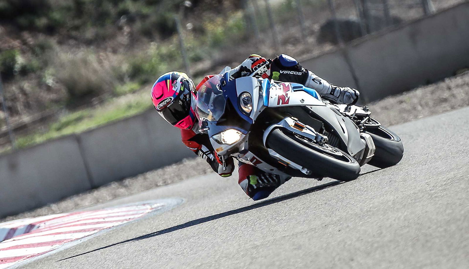 È decisamente la meno affaticante, la posizione di guida è un riuscito mix tra comfort e controllo anche se è un po’ “seduta” e con una sella fin troppo morbida, il che contribuisce al fatto di non comunicare perfettamente quello che succede nell’interfaccia gomma-asfalto. Difficile identificare con certezza il funzionamento delle sospensioni semi attive (prodotte in questo caso da Sachs) perché non hanno un comportamento sempre omogeneo. La logica “event based” reagisce, infatti, in tempo reale “sentendo” quel che succede sotto la ruota e regolando l’assetto di conseguenza. Il risultato è che non sempre nella stessa staccata le reazioni sono omogenee. Questo ovviamente finisce per disturbare un po’ il pilota professionista che va alla ricerca del lap time, mentre il pilota da track day trova nella S1000RR una compagna fedele che lo fa andare sempre forte in modo quasi “spensierato”. In fondo questo è quello che è piaciuto della BMW fin dal suo esordio.