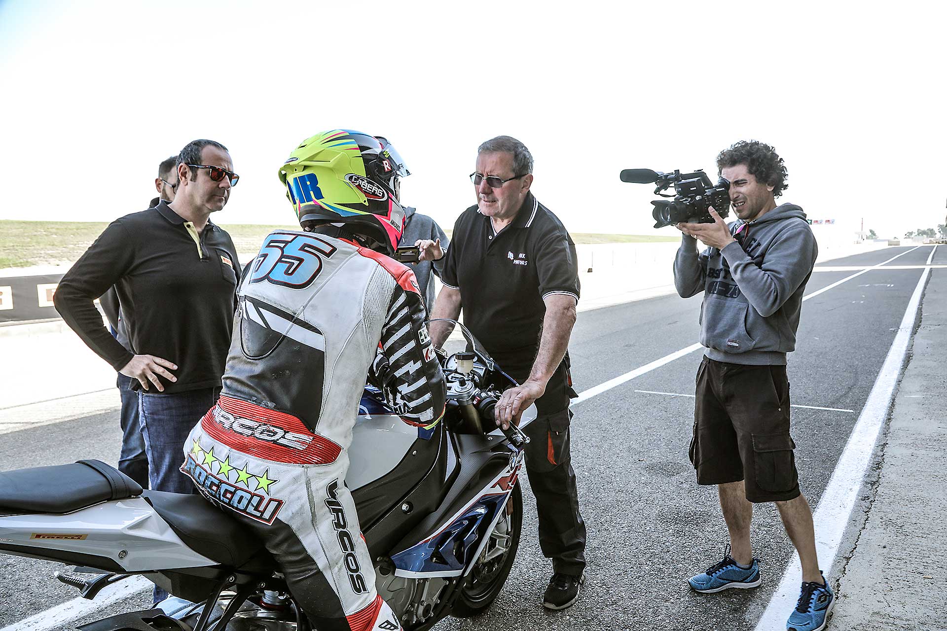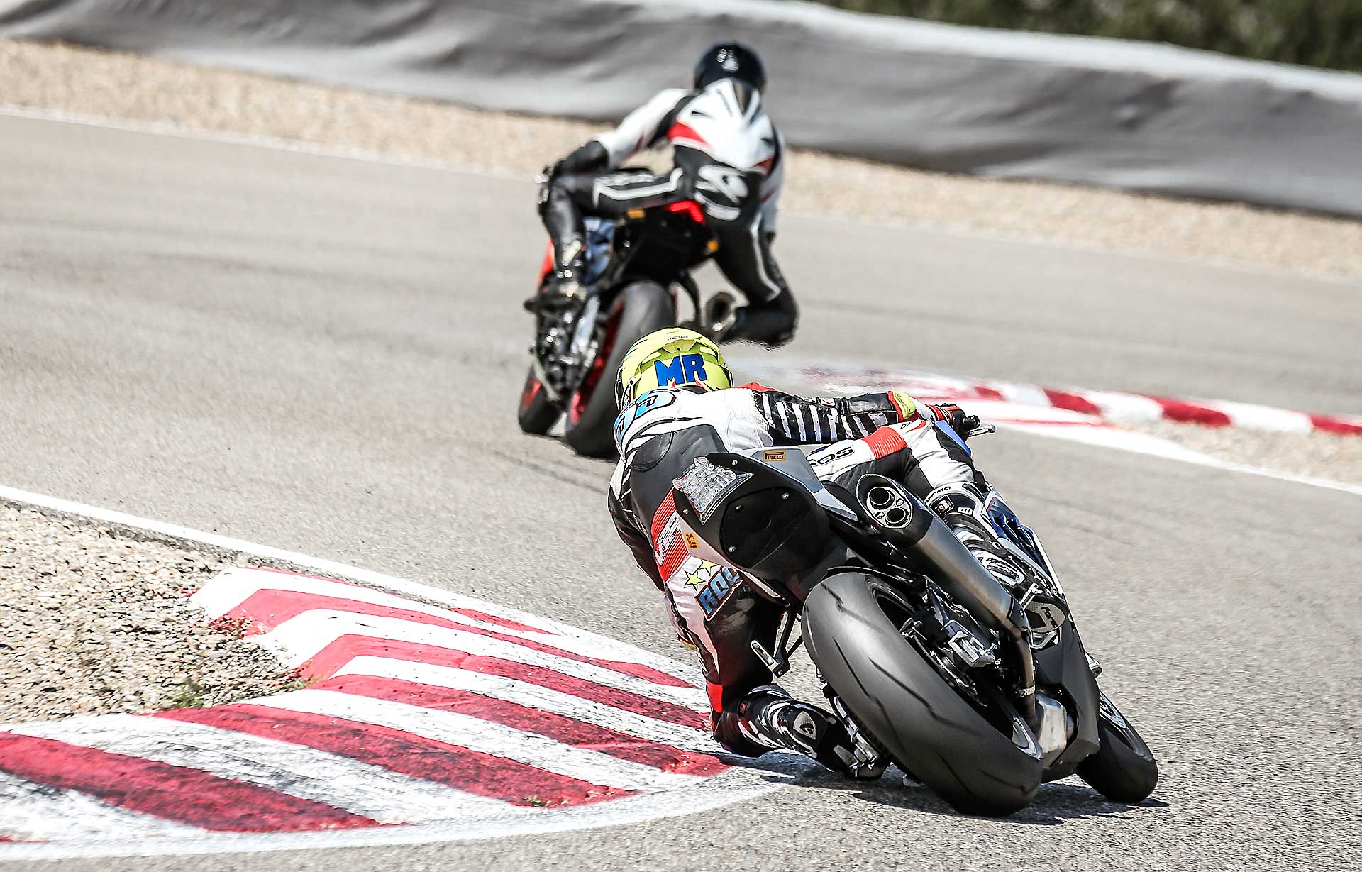 Il motore era e resta uno dei suoi punti di forza. Potente, estremamente gestibile, quasi amichevole considerate prestazioni che comunque sono ancora oggi al top, anche se ora dopo aver provato moto più “cattive” si vorrebbe un comando del gas più diretto, e una risposta più pronta. Ora invece è un po’ “elastica” e questo fa sì che soprattutto nella famigerata curva 3 di Alcarras, quella in cui si deve ripartire a da bassa velocità in prima il motore si faccia aspettare sempre un pochino prima che arrivi la potenza. Nel time attack la S1000RR, ha sofferto di uno dei limiti “cronici” per questa moto quando lasciata perfettamente di serie, ovvero l’allungamento della leva del freno anteriore, che non ha permesso a Roccoli, molto aggressivo in questa fase di non migliorare di molto il tempo nel secondo giro lanciato. Chi (come il sottoscritto) invece non aggredisce l’impianto frenante non ha avuto alcun problema. Questo spiega la relativa poca differenza nel tempo sul giro. Il freno posteriore invece è poco incisivo (e molto basso) e questo non ha aiutato quando nella gestione della percorrenza. BMW ha sofferto anche della mancanza della presenza sul campo del tecnico ufficiale, che sicuramente poteva essere ancora più preciso di quanto siamo stati noi nella ricerca di un assetto più performante.