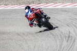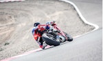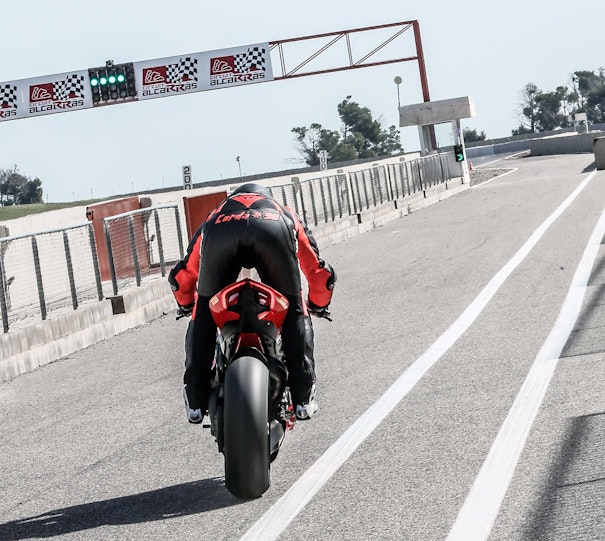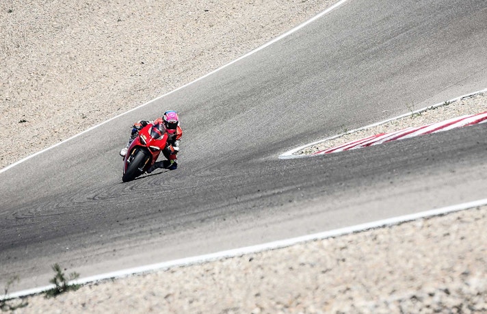 Una moto con tali prestazioni vuole anche contesti adeguati per dare il suo meglio, ho avuto la fortuna di poter guidare la Panigale su tre tracciati differenti come Valencia, Kyalami e ora Alcarras. Posso quindi dire con certezza che su piste fluide e scorrevoli con curvoni distesi e poche ripartenze da fermo questa moto potrebbe non avere rivali.Alcarras, invece, le va quasi stretta, cosa che non le ha impedito di prendere una sacco di bei voti dai tester presenti ed essere comunque efficace, perché di punti di forza la V4 ne ha parecchi, molti dei quali concentrati nella delicata fase staccata-ingresso-percorrenza di curva. È qui che questa moto riesce a fare la differenza, meravigliosa la gestione della frenata (ABS impressionante!), della scalata (miglior downshift e gestione freno motore in questa fase), eccellente per inserimento e precisione nel prendere la corda, la migliore velocità nei cambi di direzione (anche in questo caso Aprilia e Honda non sono molto lontane). Ducati velocizza queste aree di manovra al punto che poi quasi tutte le altre moto sembrano tutte “lente” a eseguire i comandi. Puntata sul davanti (non solo come posizione di guida, ma anche come distribuzione dei pesi) e con un manubrio largo come una motard, offre una posizione in sella che personalmente mi piace moltissimo.