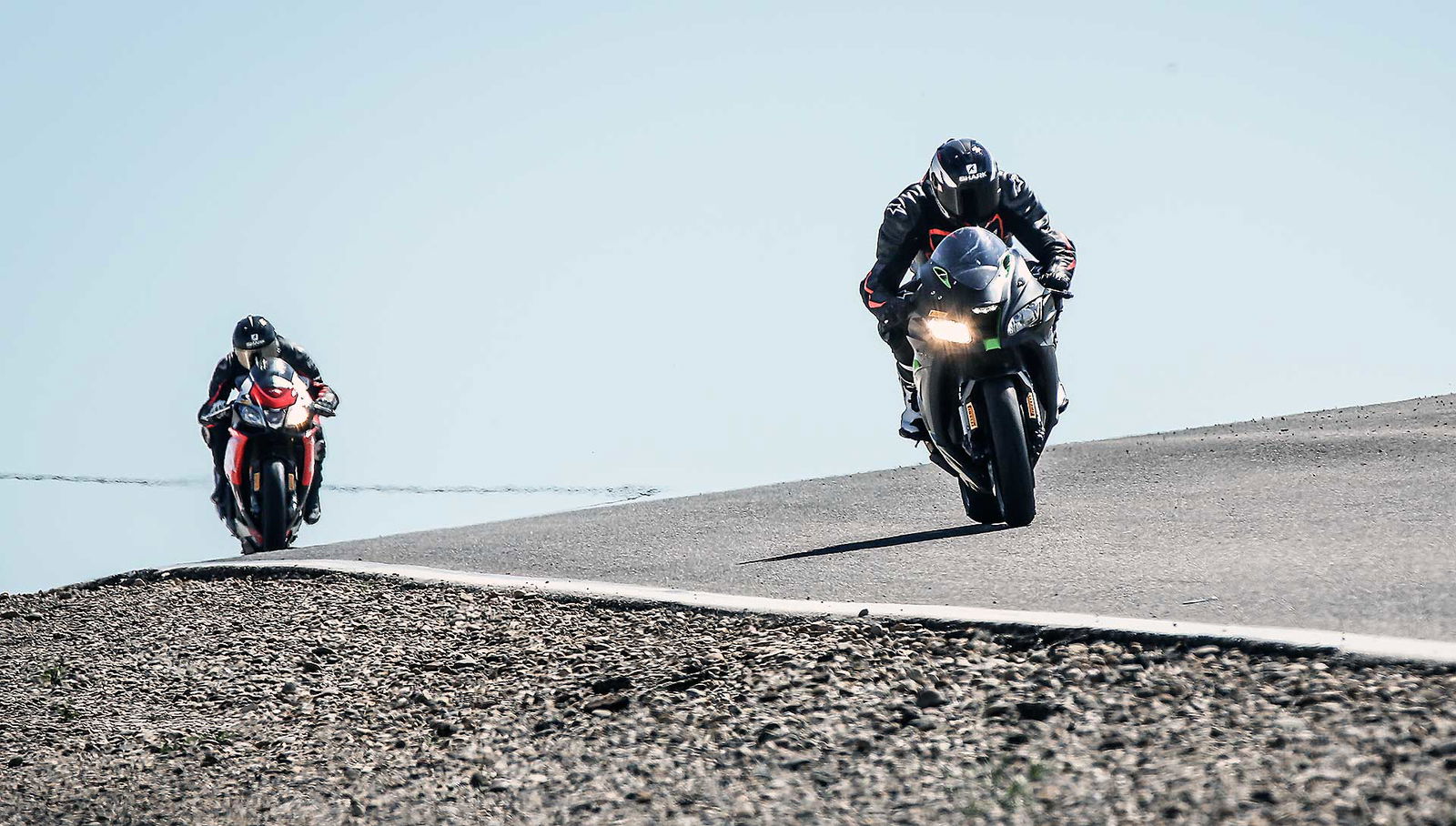 Questo aiuta a timonare il peso consistente della Kawa (la più pesante di tutte, tra lei e Honda passano oltre 10 kg) tra le curve di Alcarras. Da questo e anche dalle misure piuttosto distese si capisce che la Ninja non ha nella maneggevolezza la sua arma migliore. Più stabile che agile non è velocissima eseguire i comandi nel pilota e nel cambiare direzione rivelandosi un po’ “fisica”. In compenso ha un avantreno che scava l’asfalto, realmente solido e rassicurante ispira tanta confidenza e invita ad osare. Così alla fine con lei ci si fida moltissimo e viene facile buttarsi nella buca come un paracadutista, certi che l’avantreno non mollerà e che le buche non la infastidiranno perché le sospensioni copiano molto bene.