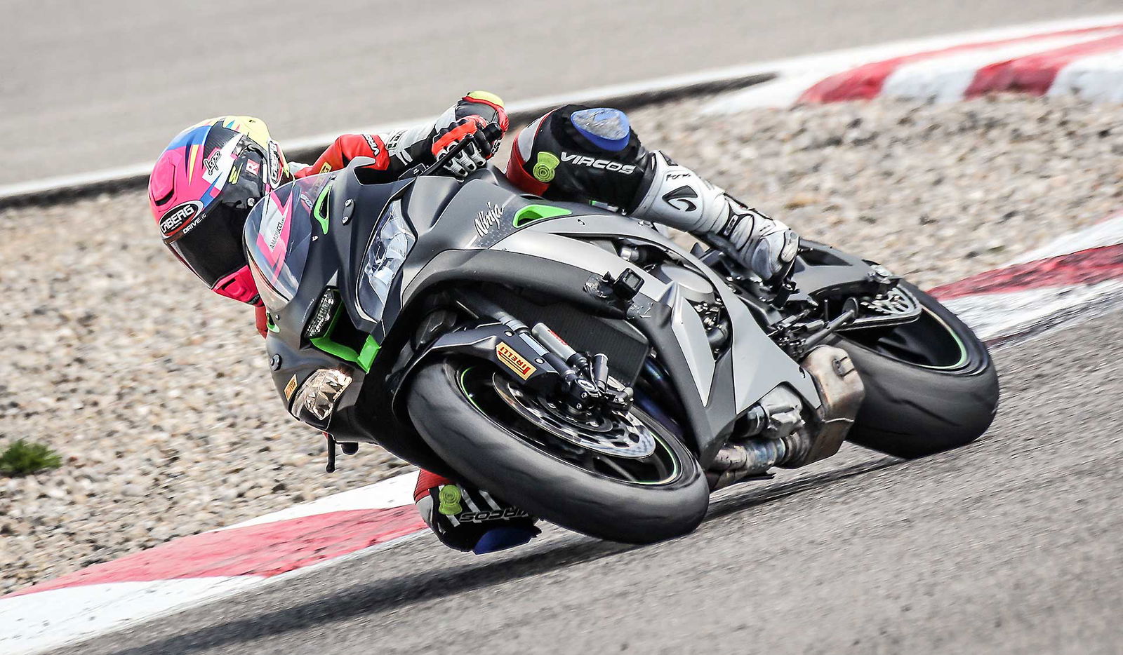 Molto ben messa a livelli di elettronica, con un antiwheeling non regolabile separatamente dal TC come avviene su Honda, ma realmente efficace, la Ninja è velocissima nei cambi marcia, e ottima anche per quel che riguarda il traction control, a livello dei migliori e consentono di dare gas molto presto senza troppi patemi. Kawasaki, come Yamaha, è una di quelle moto “ingannevoli”. Mentre sei in sella alla Ducati ti sembra di star spaccando il mondo, con lei invece stracci il gas pensando “corri bambina corri che il cronometro non ci aspetta” insomma non hai la sensazione di essere così veloce. Invece alla fine il cronometro ti da soddisfazione. Il miglior giro in assoluto ad Alcarras è stato il suo, Roccoli ha estratto il coniglio dal cappello aggredendola. Il mio time attack è stato invece meno incisivo, cosa che ha alzato un po’ il tempo medio.