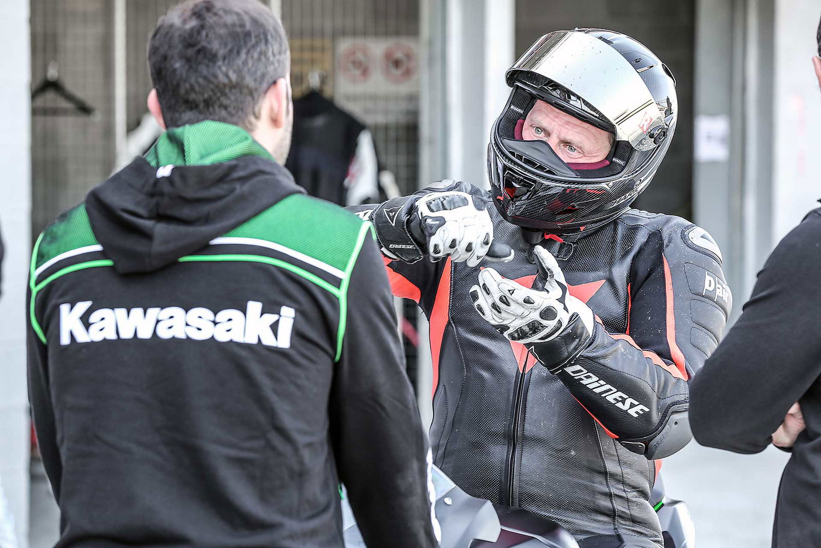 Zitta zitta, la Kawasaki si è conquistata l’apprezzamento di quasi tutti i tester presenti, esperti e meno esperti. Lo ha fatto migliorando di continuo turno dopo turno, grazie agli interventi del tecnico ufficiale presente in pista che è riuscito a rifinire un assetto già buono in partenza. Le sospensioni elettroniche Showa (uniche con la forcella pressurizzata, il sistema è battezzato KECS Kawasaki Electronic Control Suspension) sono state una piacevole sorpresa, il principio di funzionamento è “event based” come quelli di BMW ovvero reagisce in tempo reale agli eventi. Ma si percepisce che le Showa lavorano in modo molto più preciso rispetto alle sospensioni tedesche dimostrando che le dichiarazioni del costruttore giapponese sulla miglior velocità di reazione rispetto a tutto quanto sul mercato sono probabilmente veritiere.