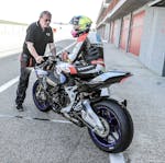 Il setting delle sospensioni è decisamente azzeccato, pur senza la presenza del tecnico ufficiale, la R1 M è partita subito bene perché l’assetto di base era già molto a punto. Grazie anche a un’interfaccia molto comprensibile siamo riusciti a intervenire senza problemi sull’assetto facendo lavorare un po’ di più la forcella in frenata ed evitando quindi che alla ormai famigerata curva 3 si sollevasse il retrotreno sporcando la staccata e chiamando in causa l’ABS. Un po’ meno sostegno di forcella, un po’ più sostegno al monoammortizzatore (con il nuovo sistema Ohlins Mecatronic 2.0 è molto facile) e Yamaha era pronta per il Time Attack, dove è stata una delle protagoniste assolute.