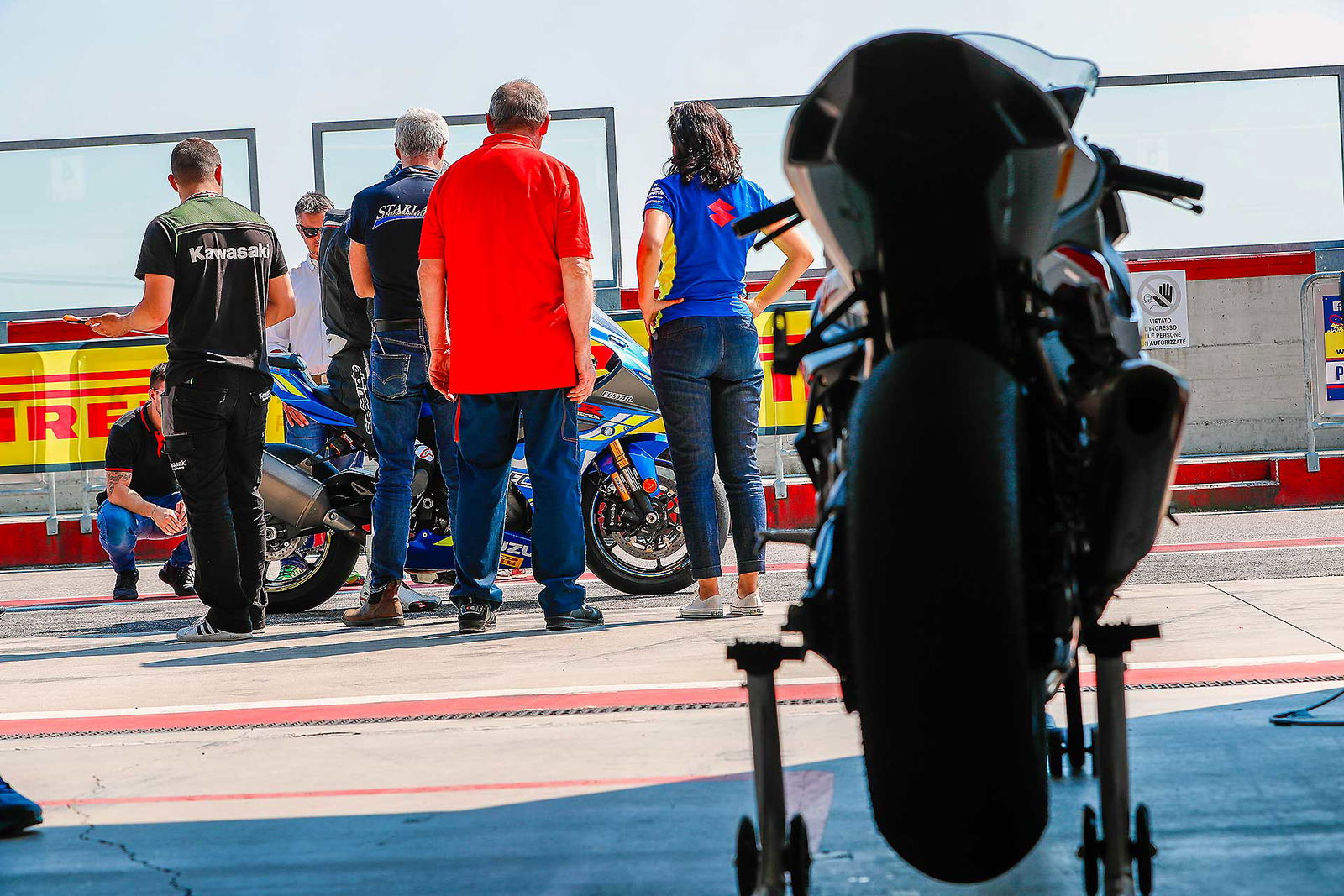 In ogni caso è utile sottolineare che il livello è così alto che a fare le differenze sono i dettagli. Offrire una regolazione in più o una in meno può influenzare la perfezione sul giro e quindi il tempo. Queste moto arrivano a un livello di eccellenza assoluta, con una loro spiccata personalità e caratteristiche che rispecchiano le scelte tecniche degli ingegneri. Con un unico obbiettivo: andare più forte degli altri. E non solo con un campione alla guida ma anche con piloti di differenti capacità – dal professionista, appunto, all’amatore domenicale -, cioè coloro che si sono alternati al manubrio delle sette moto del confronto.
