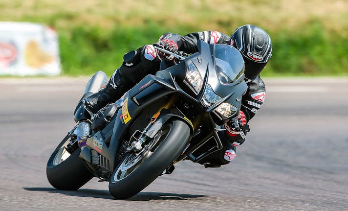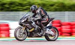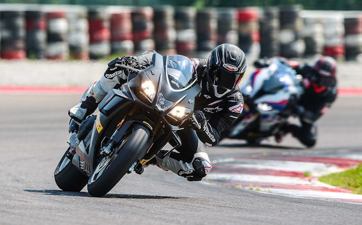 Diavolo di un’Aprilia! Anno dopo anno riesce a migliorare un progetto che sembra non risentire dei numeri riportati sulla sua carta di identità. Può sembrare facile ma quando durante lo sviluppo aumenti potenza e coppia con percentuali a due cifre ci vuole un attimo a perdere il bilanciamento. La prima RSV4 1000 aveva un motore di 999 cc, con 180 cv di potenza e 115 Nm di coppia. La RSV4 1100 Factory che ho tra le mani mentre affronto il circuito di Cremona ha 217 cv e 122 Nm. Ma, ed è quello che conta, ha mantenuto intatta la sua incredibile efficacia. Mi ha impressionato al Mugello con un motore esagerato, ma ero quasi certo che su una pista come quella di Cremona, dove al netto del rettilineo si passa tutto il tempo in piega con il gas a mezz’asta, tutta quella potenza fosse inutile o addirittura controproducente. Mi sbagliavo. La RSV4 ha un motore mostruoso ma anche una gestione elettronica da primato, una stabilità di alto livello e la capacità di farti andare forte in ogni situazione.