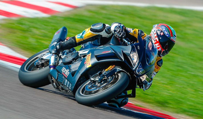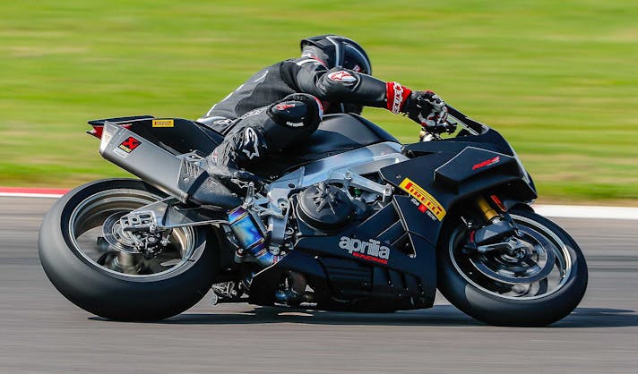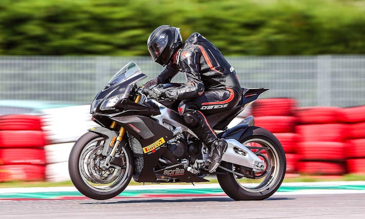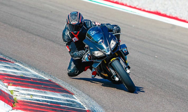 Miglior tempo con Goi, miglior tempo con Cordara, staccando le altre in modo netto. Aprilia ha vinto anche ai punti nella classifica realizzata con i voti di tutti i tester. Ci è stata consegnata con un assetto – meccanico, lo ricordo, perché Aprilia non usa sospensioni elettroniche – già molto a punto. Il fatto che la comparativa si disputasse su una pista nota ha aiutato i tecnici a portare una moto già messa molto bene a livello di sospensioni. Noi abbiamo operato solo qualche rifinitura. Personalmente ho preferito usarla con mappatura Track, che ha una gestione dei primi gradi di apertura del gas più morbida e meno aggressiva, perché questo motore ha così tanta spinta che di essere aggressivo nei primi gradi di apertura del gas non ha bisogno.