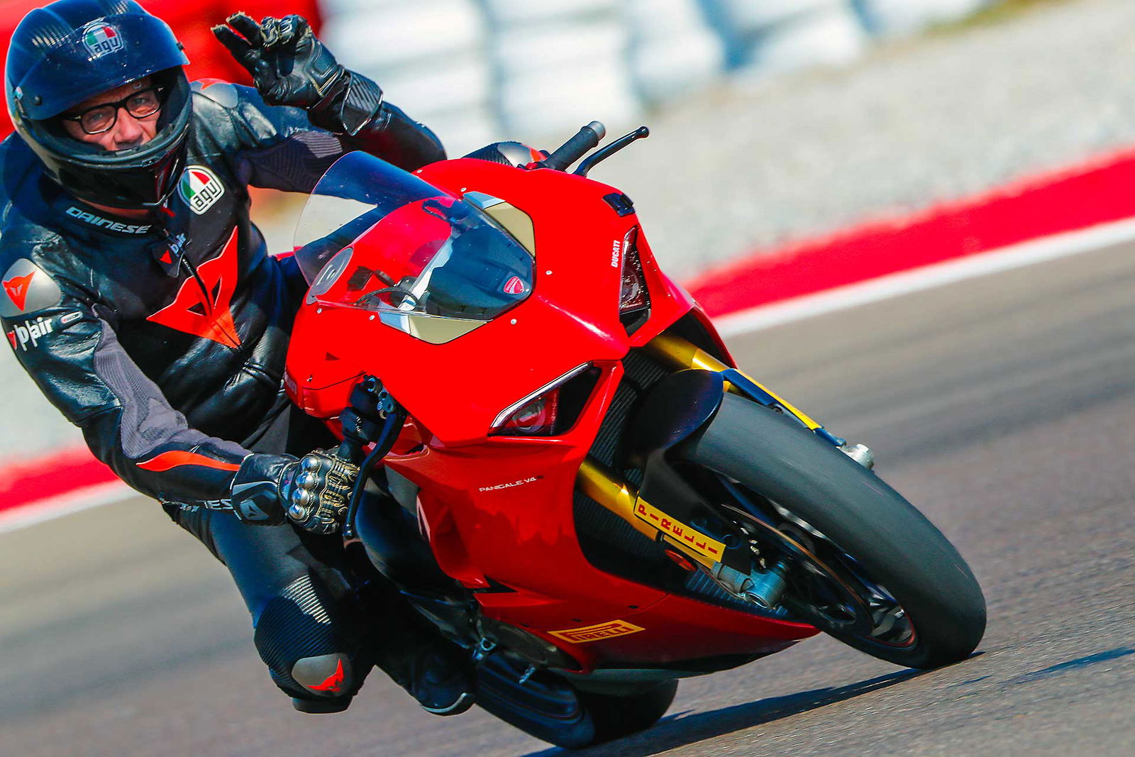 Nessuna è così svelta nel cambiare direzione, nessuna altrettanto efficace in frenata. La fase staccata/ingresso in curva è decisamente quella in cui la Panigale non si batte. Va alla corda con una velocità impressionante, cambia direzione così in fretta da togliere il fiato. Poi però c’è la fase di percorrenza, che è meno “rassicurante”: l’avantreno sembra essere un po’ leggero, non senti la gomma che scava l’asfalto e ti senti sempre un po’ “appoggiato” e questo magari, anche se per una sola infinitesima frazione di secondo, non ti fa prendere subito in mano il gas, perché aspetti che la moto si “assesti”.