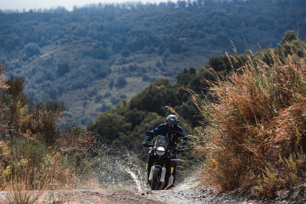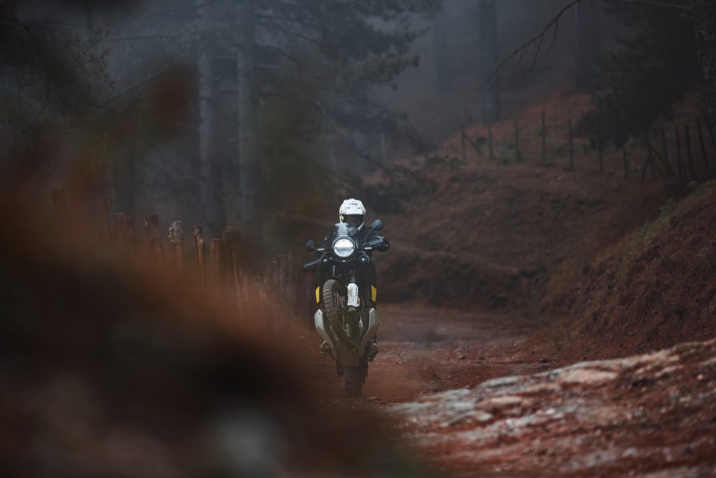 La Norden ha la sua identità, non solo estetica, caratterizzata da una posizione di guida raccolta, protetta dal cupolino, votata al viaggio piuttosto che alla ricerca del percorso avventuroso. Le sospensioni WP Apex con forcella regolabile da 43 mm ed escursione ridotta, 220 mm davanti e 215 dietro partono con un approccio più razionale. La ridotta escursione e la taratura super morbida della moto in prova lasciano poco spazio alla guida strong con il posteriore che sbandiera tra una curva e l’altra. Anzi è meglio trattarla con rispetto, evitare l’ostacolo e scegliere percorsi il più possibile levigati per non incappare nel fondo corsa delle sospensioni.