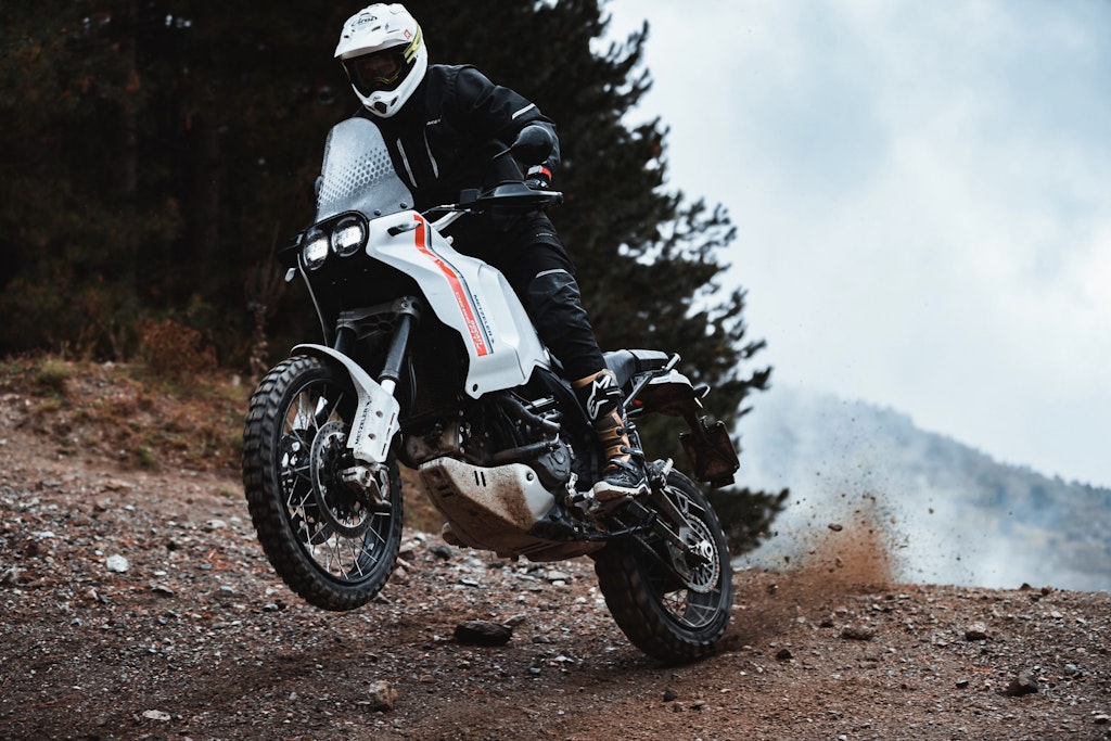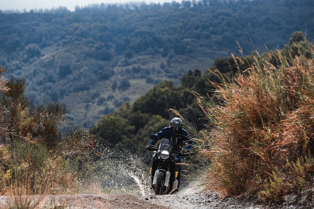 La Norden ha la sua identità, non solo estetica, caratterizzata da una posizione di guida raccolta, protetta dal cupolino, votata al viaggio piuttosto che alla ricerca del percorso avventuroso. Le sospensioni WP Apex con forcella regolabile da 43 mm ed escursione ridotta, 220 mm davanti e 215 dietro partono con un approccio più razionale. La ridotta escursione e la taratura super morbida della moto in prova lasciano poco spazio alla guida strong con il posteriore che sbandiera tra una curva e l’altra. Anzi è meglio trattarla con rispetto, evitare l’ostacolo e scegliere percorsi il più possibile levigati per non incappare nel fondo corsa delle sospensioni.