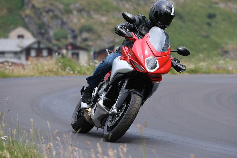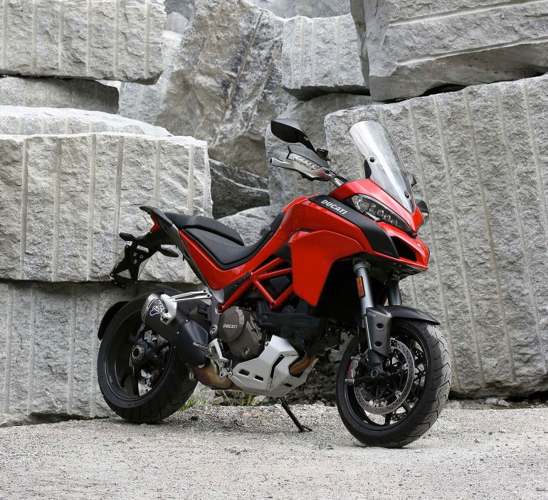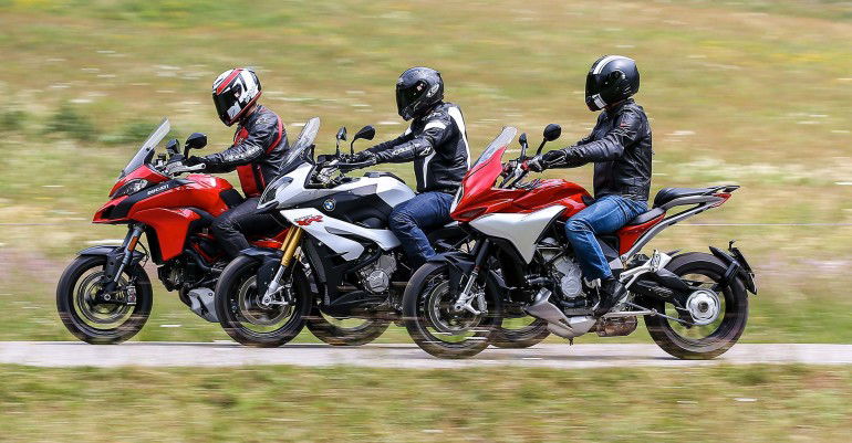 Se i francesi non avessero inventato le motard, i modelli protagonisti di questa prova probabilmente non esisterebbero. Di moto con ruote da strada, propulsori ad alte prestazioni, sospensioni a lunga escursione e freni sportivi ne esistono da lustri, ma l’evoluzione della specie che ha portato praticamente all’estinzione delle motard così come sono nate, ha negli anni plasmato quelle che probabilmente sono le stradali più complete sul mercato. Complete perché quelle che oggi chiamiamo “crossover” (termine che sta a indicare qualcosa a cavallo tra più segmenti) e che hanno nella Yamaha TDM la “madrina”, riescono a racchiudere molte facce del gusto motociclistico. Moto stradali, dicevamo, perché a dispetto di mappature off road che lasciano intendere un utilizzo più “avventuroso”, sono e restano grandi moto da strada. Capaci di viaggiare con il comfort di una vera touring, di curvare con efficacia pari a quella delle naked, di garantire prestazioni degne di una sportiva, offrono un mix che è quasi imbattibile.BMWS1000XR-DucatiMultistrada-MVAgustaTurismoVeloce-010Non c’è da stupirsi, quindi, che stazionino ai piani alti della classifica: in effetti riescono ad accontentare molti tipi di motociclisti, incarnando la new age di quelle che un tempo erano le sport touring stradali, segmento fortissimo negli anni passati e ora ridotto al lumicino proprio in favore di questi modelli.Come spesso accade ciascun produttore dà la propria interpretazione del segmento, proponendo motorizzazioni e soluzioni tecniche specifiche. Come nel caso delle protagoniste di questo Duel, che spaziano dai tre cilindri in linea 800 cc della MV Agusta Turismo Veloce al bicilindrico a L desmodromico 1.200 cc della Multistrada, passando per i 1.000 cc e i quattro cilindri in linea della BMW S 1000 XR. Tecnica molto differente per un risultato più vicino di quel che si possa pensare.Moto scariche, niente borse e una giornata di pura guida: questo il programma, con un passeggero e lungo itinerari che vanno da veloci autostrade a contorti percorsi di montagna, lasciando la calura insopportabile della città alla spalle per andare a respirare in altura. Una giornata intera in sella “no stop”, che ci ha permesso di sviscerare le caratteristiche di ciascuna moto. Una curiosità: motori differenti, serbatoi differenti ma la spia della riserva a fine giornata si è accesa nello stesso momento. Ecco come vanno le moto nel dettaglio. BMW S 1000 XR  – 16.200 euro (prezzo moto in prova: 18.530 euro)Saliteci, avviate il motore e partite. Scoprirete come il mondo attorno a voi può diventare molto lento. Con la S 1000 XR, BMW ha portato tutta la rabbiosa sportività del progetto S 1000 su una moto con cui è bello anche viaggiare. Un abbinamento formidabile che sposa perfettamente il concetto di crossover. In effetti, come del resto vale anche per le altre due moto del servizio, questa BMW sa offrire un gusto e un’efficacia di guida da sportiva autentica. Bastano un paio di curve per rendersi conto di ciò che questa “turistica” è in grado di fare. BMW ha spinto forte sulle prestazioni: i cavalli sono gli stessi della Multistrad  ma la sensazione e che sulla BMW ce ne siano molti di più. Il polso destro comanda tramite un Ride by Wire (tipologia di comando comune alle tre moto) molto a punto un motore eccezionale per potenza e spinta a tutti i regimi. Spinta aiutata dal cambio elettronico che funziona sia in salita sia in scalata, una specie di “droga” di cui dopo pochi chilometri non si riesce a fare a meno.BMWS1000XR-DucatiMultistrada-MVAgustaTurismoVeloce-013Qualsiasi sia la mappatura scelta per il motore (tre a disposizione: Rain, Road e Dynamic, le ultime due full power). La “schiena” che i tecnici BMW sono riusciti a tirar fuori da questo quattro cilindri è eccezionale, così la S 1000 XR si regala bassi corposi – e un’elasticità esemplare visto che si esce dai tornanti in terza marcia con una fluidità impressionante -, medi più che robusti e un allungo da far accapponare la pelle. Delle tre è quella che paga di più in termini di agilità: normale, visto nelle travi del telaio lavora un quattro cilindri in linea (l’albero motore è il più largo di tutti). Dire, però, che la BMW è “pesante” da far voltare sarebbe un’eresia. Complice il manubrio molto largo la maneggevolezza resta di alto livello, e in compenso l’avantreno “scava” l’asfalto come poche altre moto del segmento, infondendo al rider un feeling che ne MV né Ducati (più agili) riescono a offrire.Il rigore direzionale resta immutato qualsiasi mappatura si decida di utilizzare per il sistema di sospensioni attive DDC (Dynamic Damping Control), tarato fondamentalmente sul rigido, fin troppo in certe situazioni, soprattutto il monoammortizzatore che tende a “scalciare” sulle asperità più accentuate, come se il sistema “chiudesse” con troppa solerzia l’idraulica alle alte velocità. Questa è uno dei pochi nei che abbiamo da segnalare sulla S 1000 XR: l’altro è costituito dalle vibrazioni che arrivano al manubrio dai 5.000 ai 7.000 giri, regime che in sesta coincide proprio con la velocità Codice autostradale. Ok, della sportività abbiamo detto, ma con i viaggi come se la cava? I 400 km che più misti non si può in una sola giornata certificano che con la S 1000 XR si viaggia eccome. Dopo essersela fatta passare di mano più volte nel corso della giornata, tre tester ne hanno gradito l’ergonomia giudicata la migliore del gruppo.BMWS1000XR-DucatiMultistrada-MVAgustaTurismoVeloce-025L’animo sportivo si rivela anche nelle imbottiture delle selle, più rigide che morbide, tuttavia in questa (e in altre giornate passate interamente in sella) la BMW dimostra di essere un’instancabile passista anche per come riesce a non far stancare il suo pilota, che viaggia ben protetto dall’aria con il compatto ma efficace plexiglas (che abbiamo usato sempre nella posi