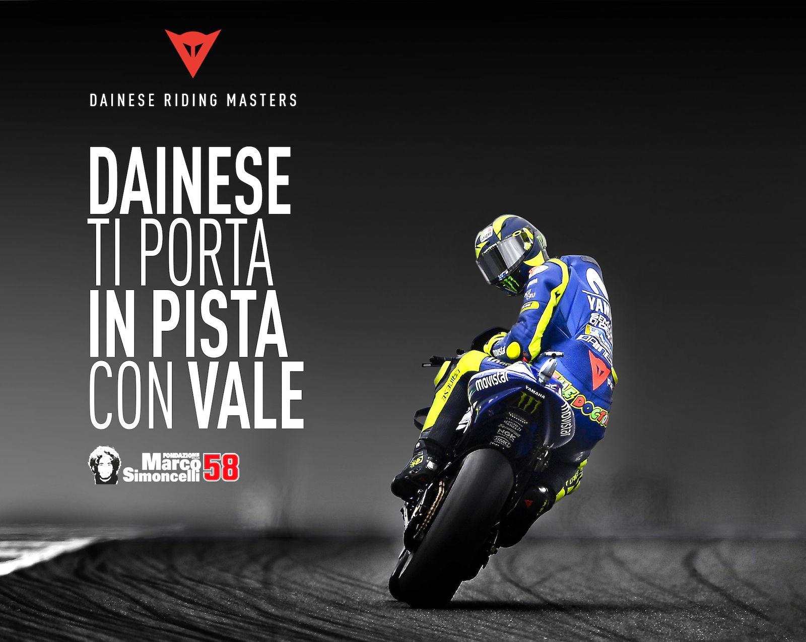 Il progetto Dainese Experience è piuttosto articolato. In programma ci sono corsi di guida sicura e in pista, fine settimana che affiancano eventi come la Coppa del Mondo di Sci e la MotoGP e, ancora, viaggi dal taglio “adventure”… Ad aprire le danze saranno i Riding Masters del 17 aprile al Misano World Circuit Marco Simoncelli. In questa occasione Valentino Rossi e i piloti della VR46 Riders Academy, Franco Morbidelli, Luca Marini, Lorenzo Baldassarri e Marco Bezzecchi, interverranno rispettivamente nella Dainese VR46 Class e nella Champion Class, per dare così delle dritte sulle tecniche di guida in pista e sulla sicurezza. Nel corso dell’evento ci sarà spazio anche per le Racing Class, che si sviluppano su cinque sessioni di guida tra i cordoli e sono dedicate a chi già possiede ottime abilità in moto, e le Safety Class, per chi invece desidera acquisire le nozioni di base di guida. In entrambi i casi i partecipanti saranno affiancati da istruttori qualificati. Le iscrizioni sono aperte e i costi si possono trovare nella sezione Experience del sito Dainese. I ticket per la VR46 Class con Vale sono invece all’asta qui e il ricavato sarà devoluto in beneficienza alla Fondazione Marco Simoncelli.