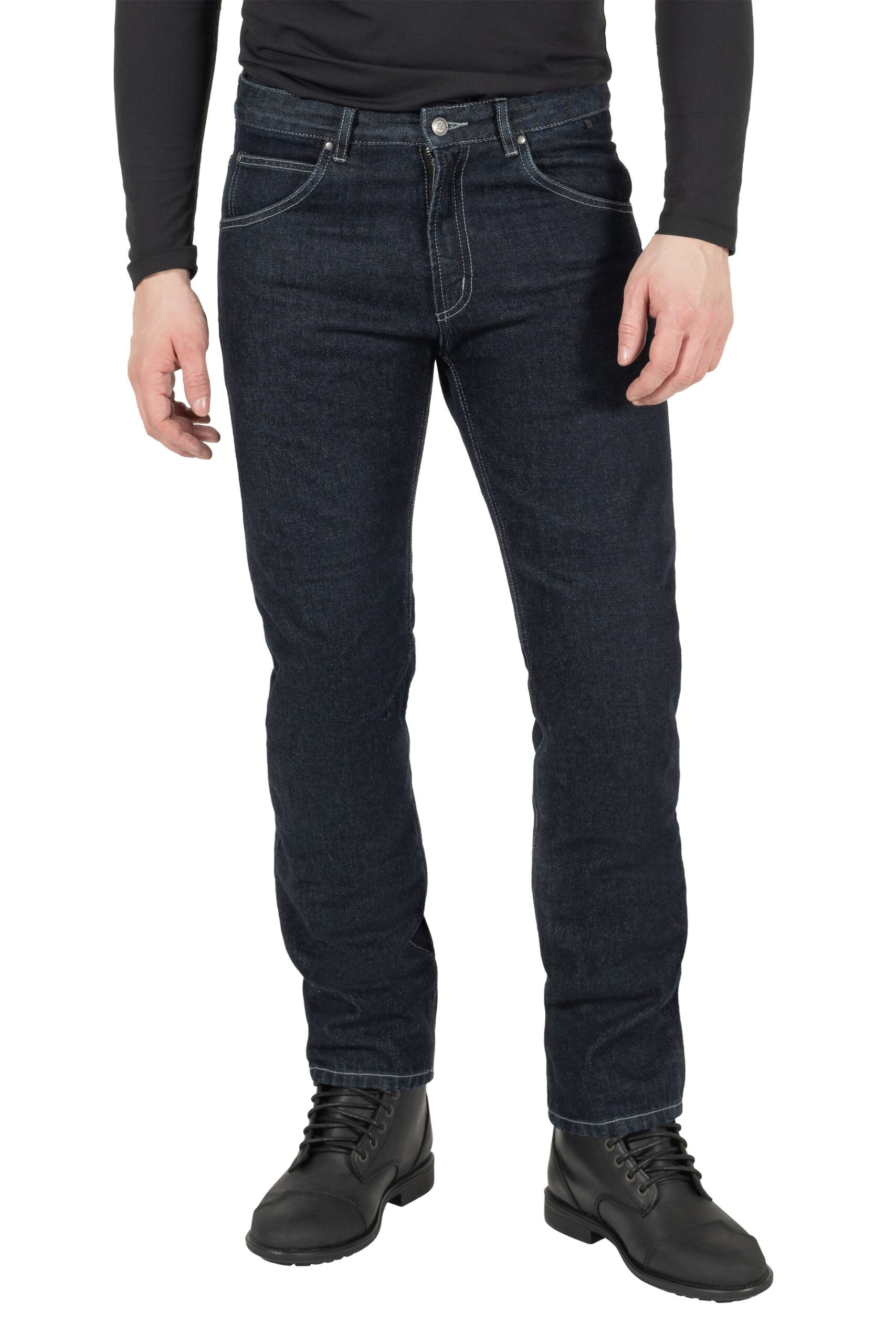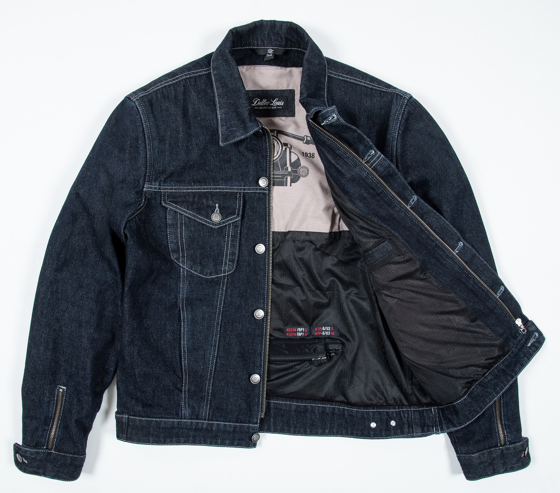 Il taglio classico del completo si abbina perfettamente ai materiali resistenti impiegati, che si tratti di tessuto in cotone, cerniere sugli avambracci o bottoni a pressione logati. Detlev Louis non tralascia neppure l’aspetto legato alla sicurezza dei motociclisti. Mette infatti in campo, per entrambi gli indumenti, dispositivi di protezione all’avanguardia e dal look discreto. La giacca è infatti dotata di protezioni rimovibili su spalle e gomiti, certificate EN 1621-1:2012, livello 2, abbinate alla possibilità di integrare un paraschiena (opzionale). Per quanto riguarda i pantaloni, anch’essi certificati classe A, beneficiano, sulle ginocchia, di protezioni rimovibili e regolabili in altezza.