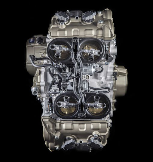 Keep Calm – Siamo ingegneriIn Ducati la nascita di un nuovo motore è spesso più importante di quella della moto che andrà a equipaggiare. Per gli ingegneri che abitano le mura di Borgo Panigale il cuore, l’essenza della moto, è lì. Quel meraviglioso insieme di pezzi di metallo (spesso pregiato) prende vita. Corre. Canta. Forse anche per questo al nuovo Desmosedici Stradale è stata dedicata “l’overture”, l’anteprima assoluta del lancio della nuova sportiva. Che una Ducati 4 cilindri stesse per arrivare era noto, ma ora che ne conosciamo il cuore possiamo addentrarci a scoprirne i segreti. Logica la configurazione V4 con cilindri aperti di 90°, con il motore che non è a L perché è ruotato all’indietro come sulla Panigale.MOTOGP STYLEL’esperienza MotoGP, da cui questo propulsore attinge copiosamente a partire dall’alesaggio di 81 mm dei pistoni, non è certo andata sprecata. Il V4 Stradale utilizza tra l’altro la fasatura cosiddetta “twin pulse”, ottenuta sfalsando i perni di biella di 70° che avvicina gli scoppi a due a due. Questa fasatura, che avvicina il comportamento del V4 a quello di un bicilindrico, in passato è stata utilizzata in gara: offre il vantaggio di una migliore sfruttabilità della potenza. Potenza che nel caso di questo motore tocca i 210 cv… La definizione “stradale” lascia aperta la porta all’arrivo di altre versioni dello stesso motore ed è sottolineata dal fatto che questo V4 non potrà essere utilizzato in gara. La cilindrata, infatti, è “fuori quota”, 1.103 cc, scelta secondo Ducati non solo per raggiungere una potenza record ma per ottenere una fruibilità d’uso superiore nella guida stradale. Vedremo alla prova dei fatti se questo corrisponde al vero.V4, GRANDI NUMERI I numeri di questo V4 Desmo sono molto interessanti: oltre ai già citati 210 cv erogati a 13.000 giri ricordiamo il regime massimo di 14.000 giri e la coppia massima di 120 Nm da 8.750 a 12.500 giri. Dato curioso: di solito c’è solo un picco mentre qui ci sono 4.000 giri in cui il motore eroga la coppia massima. Il peso è di soli 64,9 kg – solo 2,2 in più del Bicilindrico 1299, limite ottenuto grazie al largo utilizzo del magnesio -, mentre i corpi farfallati ovali con diametro equivalente di 52 mm respirano attraverso un airbox da ben 12,8 litri, praticamente una damigiana. Altre caratteristica interessante del motore Desmosedici Stradale è l’albero motore controrotante, soluzione ormai quasi universalmente utilizzata in MotoGP (e da MV Agusta per il suo tre cilindri di serie), che aiuta le inerzie “contrarie” nella gestione della moto in ogni situazione di guida. Svantaggi? L’adozione di un ingranaggio intermedio che “inverta” il moto prima di passarlo al cambio, che provoca un minimo assorbimento di potenza. Se però in MotoGP lo usano tutti è evidente che i vantaggi siano nettamente superiori rispetto agli svantaggi.I cornetti di aspirazione (altra primizia per Ducati) sono ad altezza variabile e sfruttano due iniettori di cui uno a doccia, mentre la lubrificazione è a carter semisecco per contenere gli ingombri. Fa bene Ducati a celebrare la nascita di questo V4: non solo un cuore nuovo per le sue supersportive del futuro ma una pietra miliare nella produzione motoristica di Borgo Panigale. È anche un bellissimo esercizio di ingegneria. Dopo questa Overture non vediamo l’ora di vederlo… all’Opera.