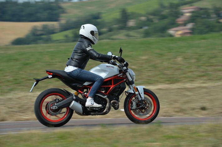 Anche la posizione di guida è perfetta; la sella, comoda, è a soli 805 mm da terra (esiste anche una sella ribassata che consente di guadagnare un paio di centimetri), le pedane avanzate e il manubrio largo. Ci si mette poco a prendere confidenza con lei, è maneggevole e agile nei cambi di direzione, il motore poi è sempre pronto e non serve cambiare spesso marcia cosa che consente di godersi senza pensieri la guida. La frizione APTC alleggerisce il carico sulla leva che si aziona senza sforzo, e ha l’effetto antisaltellamento in scalata che evita fastidiose perdite di aderenza della ruota posteriore in scalata.Compatta, leggera e maneggevole com’è il Monster 797 torna ad essere la porta di ingresso al mondo Ducati, quindi, un mondo di eccellenza e prestazioni, questa volta per tutti, donne neofiti ma anche motociclisti più esperti che scelgono un modo divertente e senza pensieri, di andare in moto.di Monica Martini