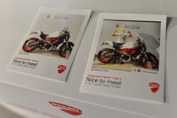 Il dialogo che era iniziato negli anni 90 con il primo Monster 900 disegnato da Miguel Galluzzi, e continuato poi con il fratello minore il 600 nel 1994, presto ribattezzato “Monsterino”. Ducati prima di allora, era un brand legato esclusivamente al mondo delle supersportive prestazionali, con il Monster si avvicina invece a chi non cercava performances da superbike. E’ stato un successo immediato per una moto che è divenuta immediatamente un Instant Classic dando vita a un segmento che fino ad allora non esisteva; quello delle naked sportive. Una motocicletta essenziale, bella, tecnologica accessibile ma sofisticata nel design e nelle dotazioni. E soprattutto divertente e facile; “undemanding fun” era l’obiettivo, e in effetti il Monster consente di divertirsi senza troppi pensieri.315.000 MONSTERSono stati, negli anni, 315.000 i motociclisti che si sono fatti sedurre da questa affascinante nuda. E nel 2008 il 20% circa dei clienti che scelsero il 696 erano donne. Un rapporto importante quindi quello con le motocicliste che Ducati ha celebrato lo scorso week end con un evento a loro dedicato: Nice to Meet. Donne e motori, il binomio più scontato forse, ma anche tra i più affascinanti di sempre. Sono state un centinaio le motocicliste che hanno avuto la fortuna di provare il 797 sui colli bolognesi; alcune provette biker, altre alle prime armi.Una moto, la nuova Monster, che torna alle origini riscoprendosi nuova ma sempre coerente. Riconoscibile nelle forme, grazie ai numerosi richiami al passato partendo dal serbatoio per arrivare al fanale rotondo e basso passando per il telaio a traliccio che torna ad essere integrale come nel primo modello e il motore bicilindrico a L nuovamente raffreddato ad aria, con le alette ben in vista.Anche il forcellone triangolare richiama la forma del 696, mentre il gancio nella parte anteriore del serbatoio è invece un omaggio al primo Monster. Ed è proprio la parte emozionale del rider quella che è immediatamente conquistata (parlo da donna) da questa moto. Bella curata nei dettagli, ma semplice senza fronzoli inutili.SU STRADA
