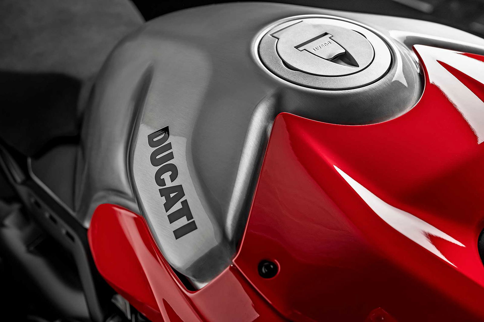 Presente (e non poteva essere altrimenti) tutto il corredo elettronico che già abbiamo imparato a conoscere sulla V4S. Gestiti da una piattaforma inerziale IMU a 6 assi ci sono ABS Bosch Cornering EVO, DTC EVO, DSC (Ducati Slide Control), DWC EVO, EBC EVO. Non mancano il Launch Control e il Quick Shifter, attivo sia in salita sia in scalata. Parte dell’elettronica è la strumentazione con schermo TFT da 5” (con varie modalità di visualizzazione) e il Ducati Data Analyzer+ con modulo GPS. La moto è connessa grazie al Ducati Multimedia System, ossia è possibile visualizzare le chiamate in entrata, selezionare un brano musicale e ricevere notifiche SMS direttamente sul cruscotto. Sicuramente utile per mandare un messaggio mentre passate in staccata il vostro avversario…