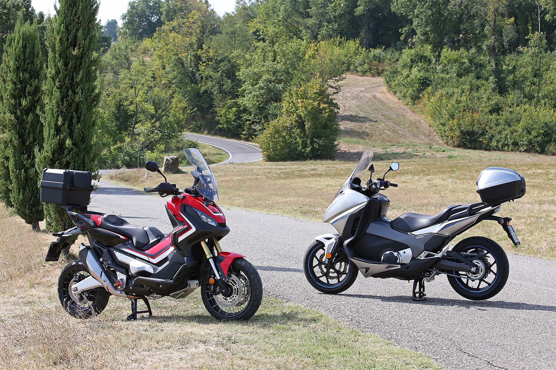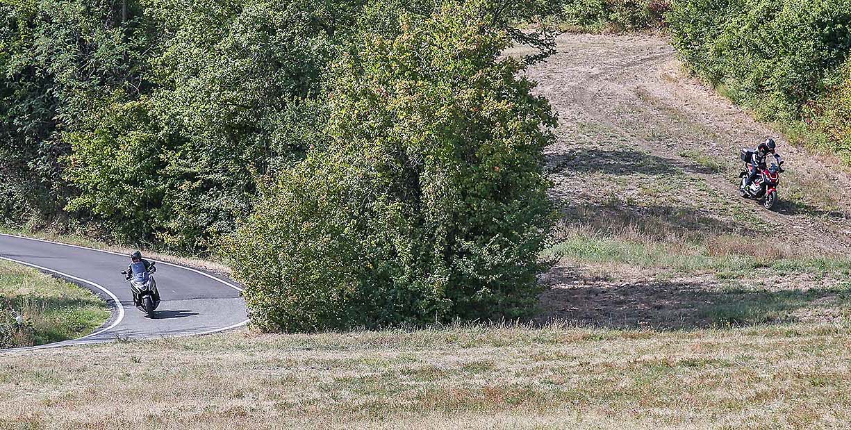 Per quanto riguarda la tecnica approfondita vi rimandiamo alle prove singole, qui (X-ADV) e qui (Integra 750 S). In questo confronto analizziamo cosa cambia tra un modello e l’altro e come ciò influisca nella guida.