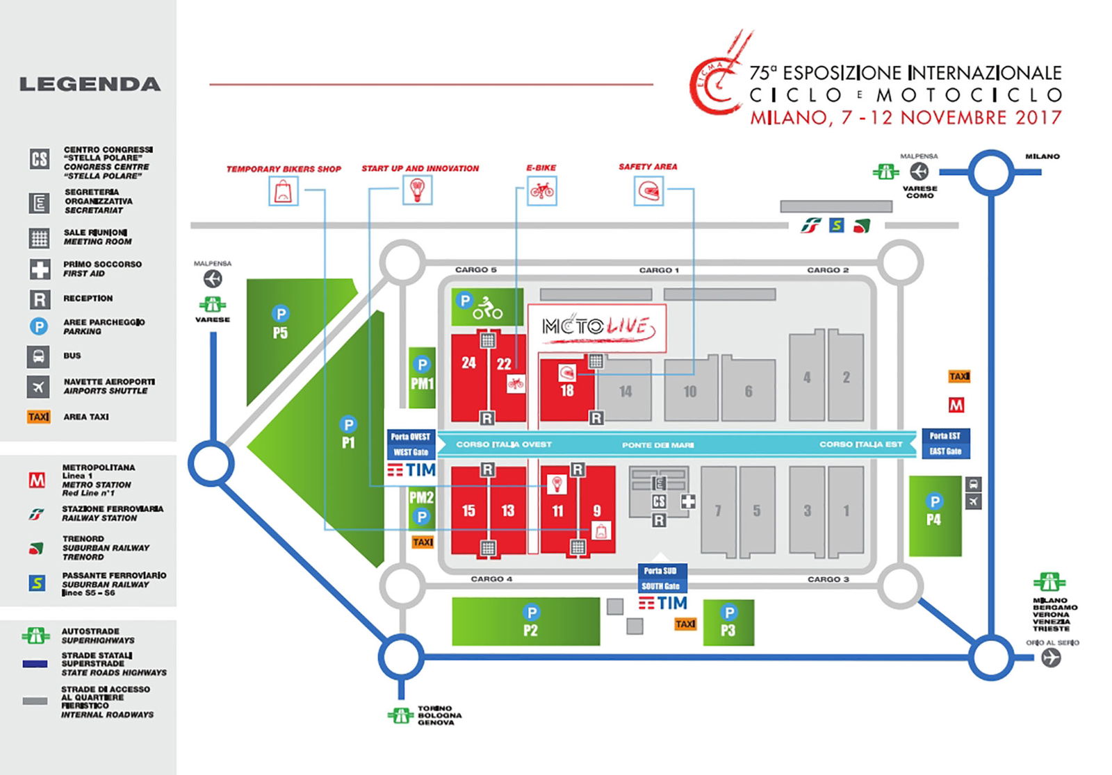 BICI ELETTRICHE E SHOW A 2 E 4 RUOTE IN ESTERNAL’Area E-Bike (leggi qui la news), allestita da EICMA in collaborazione con BikeUP, esporrà tutte le novità del settore bici elettriche e sarà affiancata da una pista esterna di 1.000 metri, caratterizzata da una salita di 170 metri e un dislivello dell’8%. Altra zona speciale, sempre affollatissima di curiosi a naso in su, è l’arena MotoLive. Da venerdì 10 novembre ospiterà tanti vivaci appuntamenti a base di show con due e quattro ruote e prestigiose gare, come le finali dei Challenge Yamaha 2017, lo Scrambler Ducati Flat Track e momenti dedicati alle discipline Enduro e Motocross. In esterna saranno presenti anche aree di Stunt Riding e, per i più piccoli, attività di Riding School.QUI MILANOE una volta chiusi i cancelli di Rho-Fiera la festa dei motori sconfina in cinque zone di Milano: Motoquartiere Isola, il Clubbing district di Garibaldi, l’East Side di Lambrate, l’area di Porta Venezia e dei Navigli-Darsena. Saranno oltre 180 gli eventi in programma, che potrete consultare nei prossimi giorni sui siti di EICMA e Vivimilano. Non da ultimo, è prevista anche l’installazione di un maxi schermo in centro città che programmerà, giorno e notte, servizi e immagini del Salone.ORARI E BIGLIETTIQuesti gli orari di apertura dei padiglioni del Polo Rho-Fiera, Milano. Giovedì 9 novembre dalle 9.30 alle 18.30; sabato 11 e domenica 12 novembre dalle 9.30 alle 18.30. Giornata speciale venerdì 10 novembre, con apertura del Salone prolungata fino alle 22, ingresso gratuito per le donne e riduzione del costo del biglietto a 12 euro a partire dalle 18.A proposito di biglietti, l’intero si acquista online sul sito www.eicma.it o alle casse a 21 euro. Per le altre tipologie di biglietto occorrerà recarsi alle casse: i ragazzi dai 9 a 13 anni e gli over 65 potranno accedere versando 12 euro, mentre chi ha un’età compresa tra i 14 a 17 anni pagherà 15 euro. Sono previsti sconti anche per i gruppi formati da almeno 20 persone e l’ingresso gratuito per i bambini fino agli 8 anni e per i visitatori disabili. Segnaliamo infine che i motociclisti avranno la possibilità di parcheggiare gratuitamente la propria moto all’interno di EICMA: l’ingresso da tenere presente è il Cargo 5.
