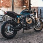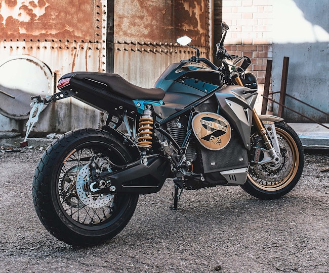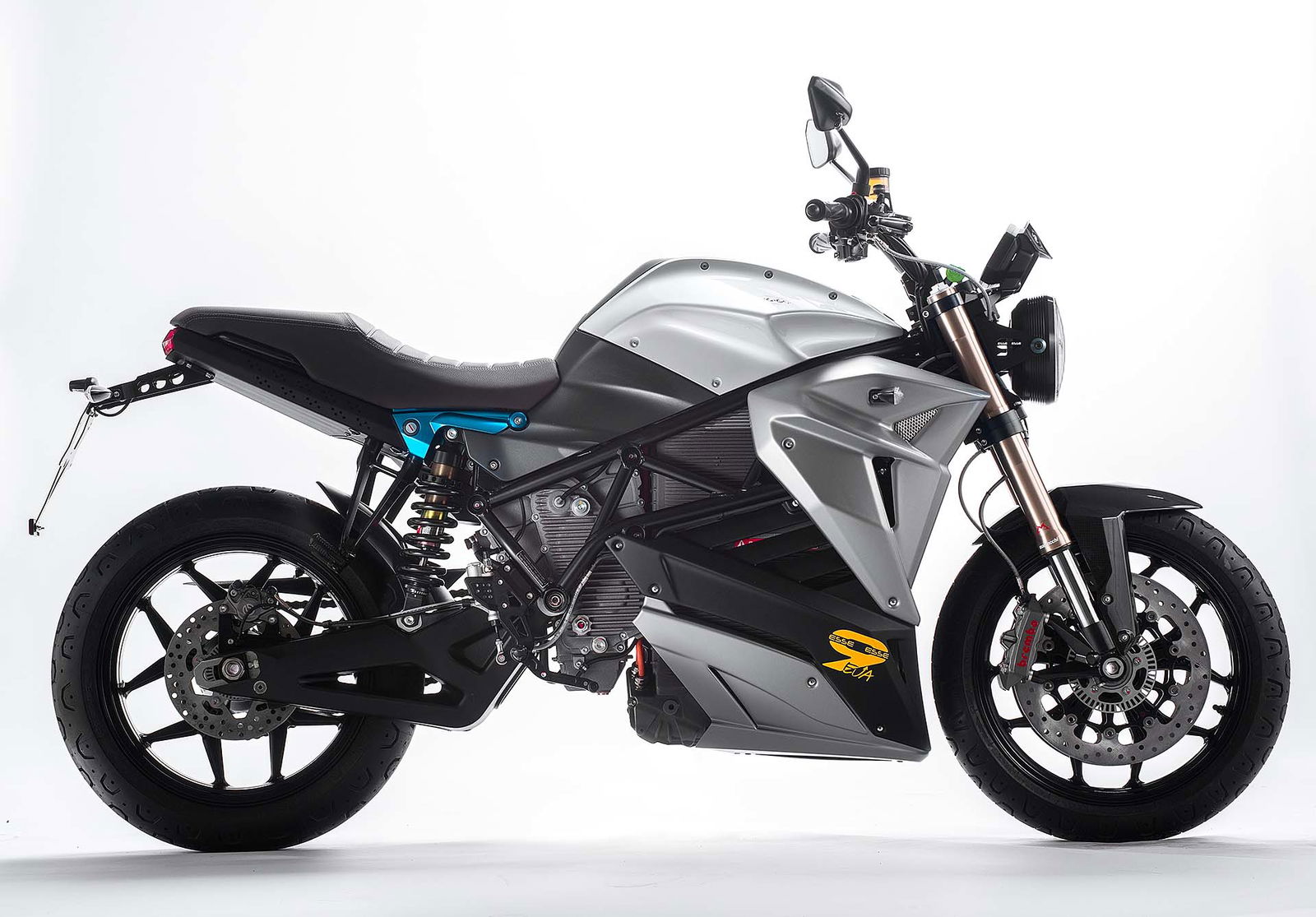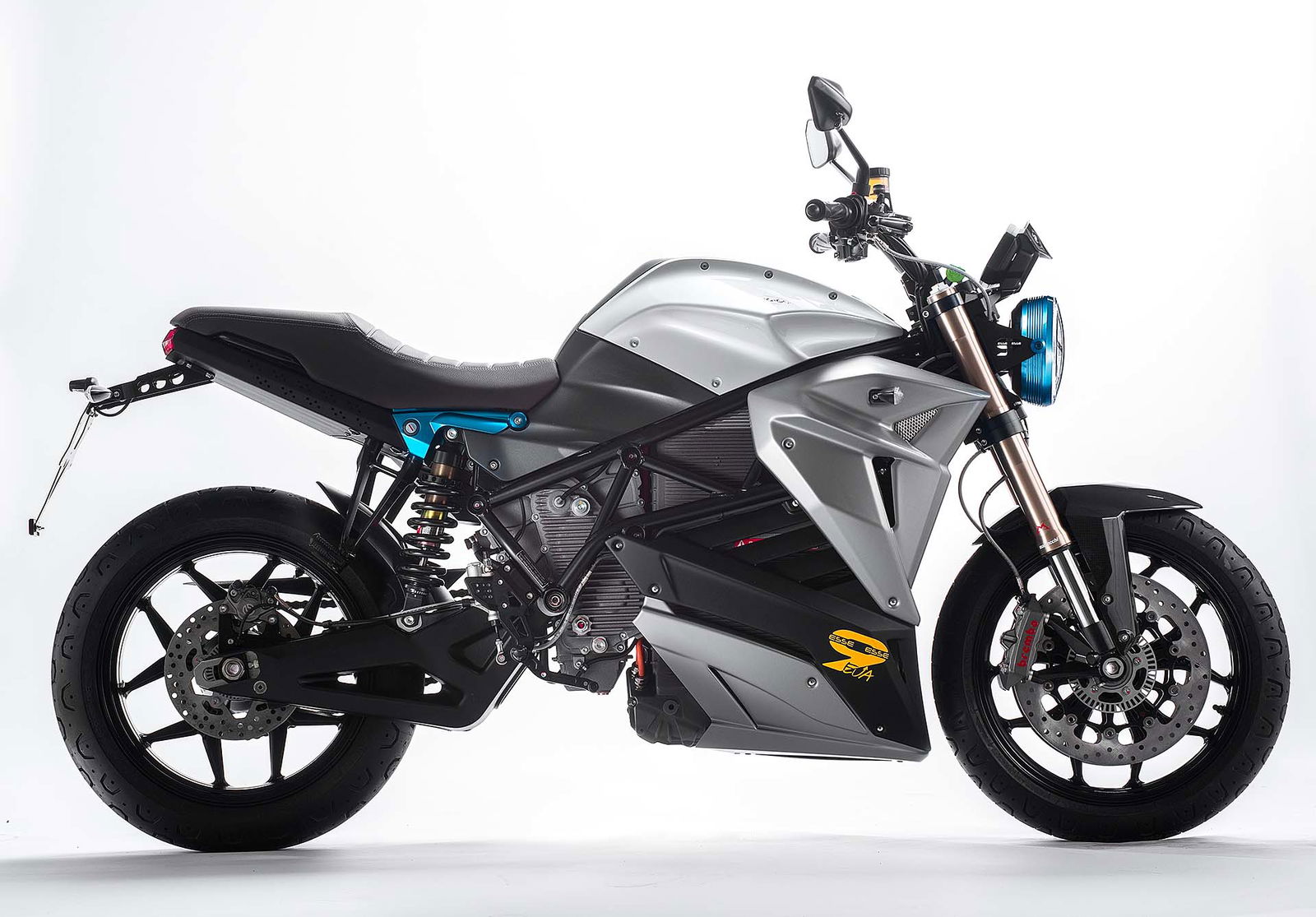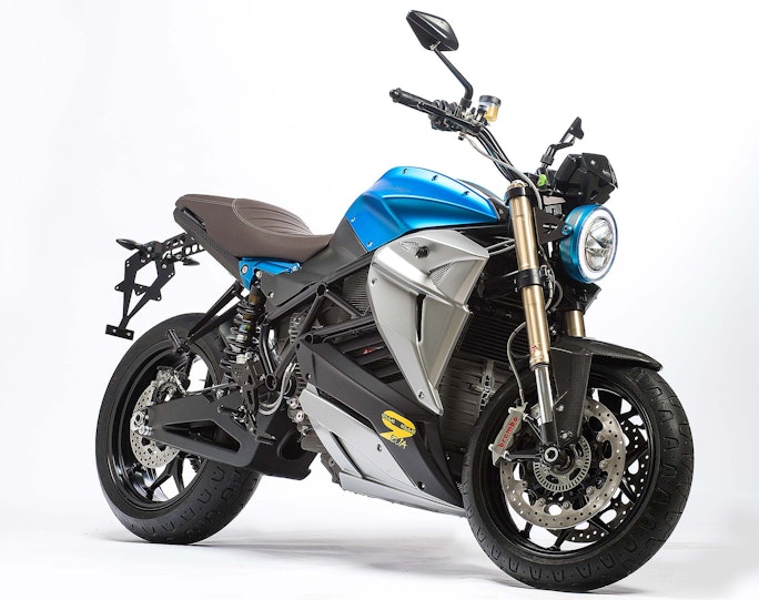 GEMELLEL’Energica Eva EsseEsse9 ha la meccanica identica al modello naked. Il motore è un potente sincrono a magneti permanenti con raffreddamento ad olio da 109 cv a 6.000 giri e 180 Nm. Quattro le mappature (Urban, Eco, Rain e Sport), altrettante le modalità di frenata rigenerativa (Low, Medium, High, Off). La batteria ai polimeri di litio garantisce secondo Energica 150 km di autonomia media, che varia a seconda del reale utilizzo e delle mappature. Si carica fino all’85% in soli 30 minuti grazie al sistema FastCharge; per la ricarica completa servono 3 ore e mezza.Il telaio è a traliccio in tubi di acciaio e ha misure compatte, come evidenzia l’interasse di 1.465 mm. Le sospensioni sono di qualità: davanti c’è la forcella Marzocchi USD con steli da 43 mm, dietro il mono Bitubo con fulcro laterale al forcellone in alluminio, senza leveraggi. Ai freni pensa Brembo con due imponenti dischi da 330 mm e pinze ad attacco radiale; l’ABS è disinseribile. La strumentazione è incentrata sullo schermo TFT a colori.CHE STILE!Old school: l’Energica Eva EsseEsse9 deriva strettamente dalla naked Eva, ma rispetto a questa ha il faro tondo full LED con luci diurne (DRL). È la prima moto di serie al mondo a utilizzare questa tecnologia. Molti dettagli sono ispirati a suggestioni classiche, ad esempio la sella con cuciture a vista.