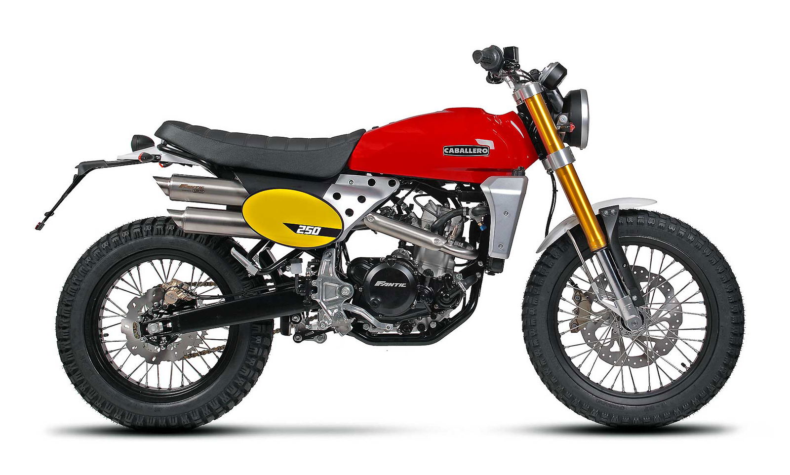 I motori: monocilindrici raffreddati a liquido con distribuzione monoalbero a 4 valvole, hanno misure caratteristiche e valori di coppia/potenza diversi. Partendo dal più piccolo, ha una cilindrata di 124,45 cc (52 mm x 58,6 mm alesaggio e corsa) ma i dati di potenza e coppia non sono dichiarati. Salendo si trova il 250 (249,6 cc, 77 mm x 53,6 mm alesaggio e corsa) capace di 28 cv a 9.000 giri e 22,5 Nm a 7.000, mentre ancora più in alto c’è il Caballero 500 (449 cc, 94,5 mm x 64 mm alesaggio e corsa), forte di 43 cv a 8.500 giri e 40 Nm a 7.500 giri. A seconda della cilindrata cambiano anche le masse in gioco, non di molto: il Fantic Caballero 125 pesa 130 kg, il 250 si ferma a 138 kg e il 500 arriva a 145 kg.