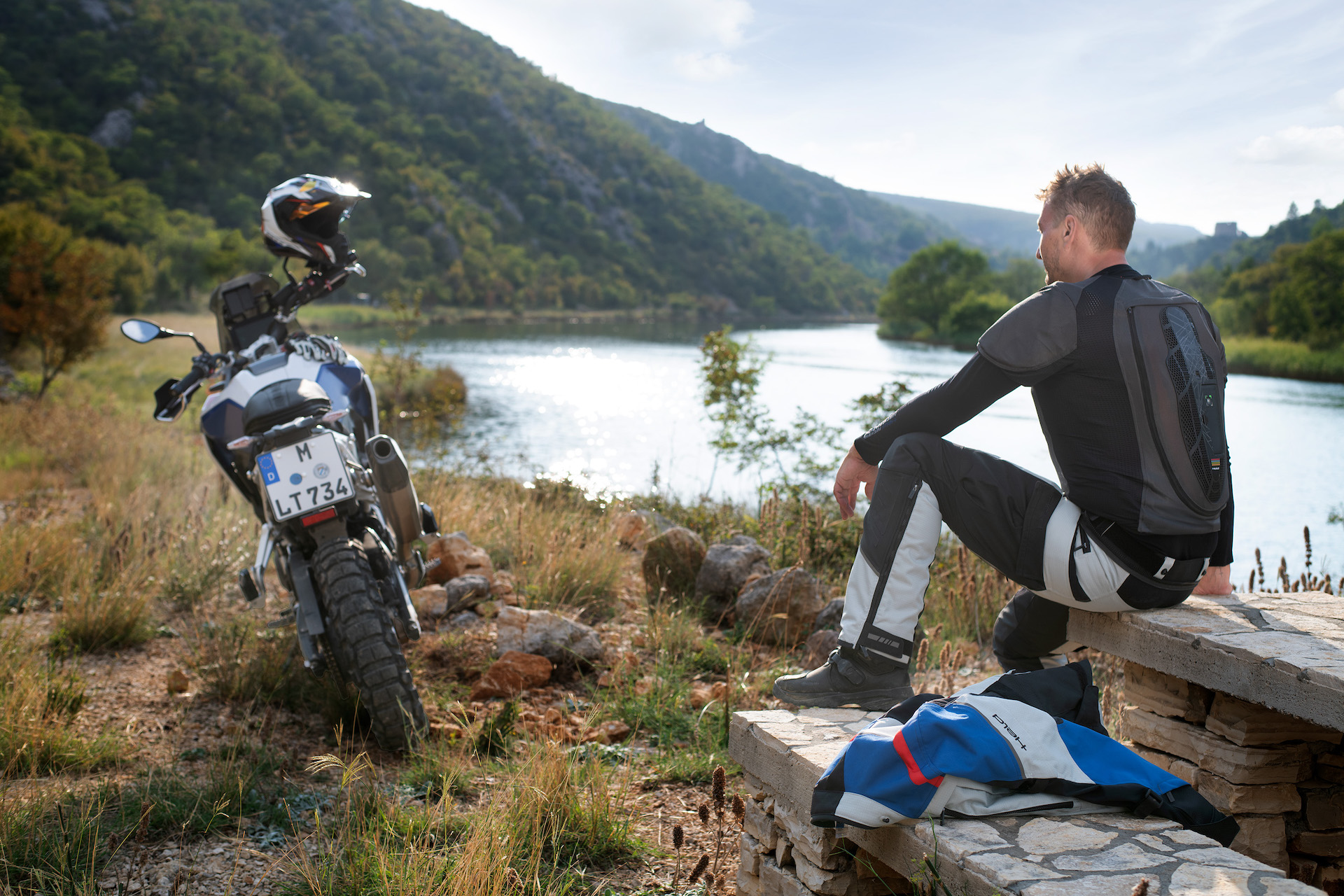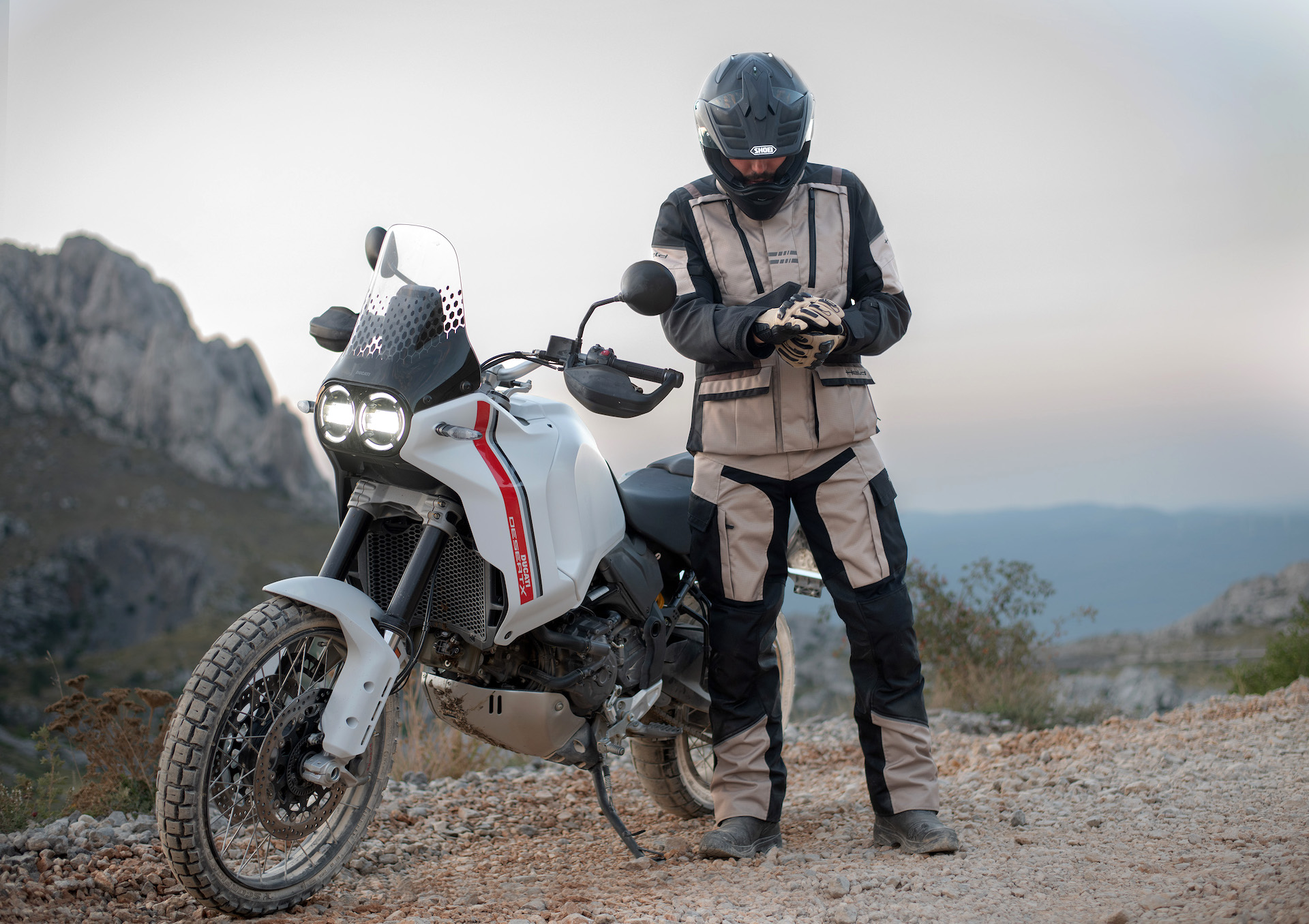 Giacca e pantaloni sono in Cordura RipStop 500D e hanno inoltre in comune la membrana Sympatex, impermeabile, antivento, da indossare sopra o sotto i due indumenti grazie alla tecnologia Over&Under. Entrambi i capi, certificati secondo la norma EN 17092:2020, sono compatibili con i sistemi Clip-In ed eVest ed eVest Pro e sono ricchi di tasche e aperture, per consentire un’adeguata ventilazione. La giacca, in particolare, è dotata di protezioni D3O T5 EvoProX su spalle e gomiti (EN 1621-1:2012 – Livello 2) e predisposizione per paraschiena (opzionale, EN 1621-2:2014). Inserti riflettenti per una migliore visibilità e cerniera di collegamento per unirla al pantalone sono altri dettagli sul fronte sicurezza.