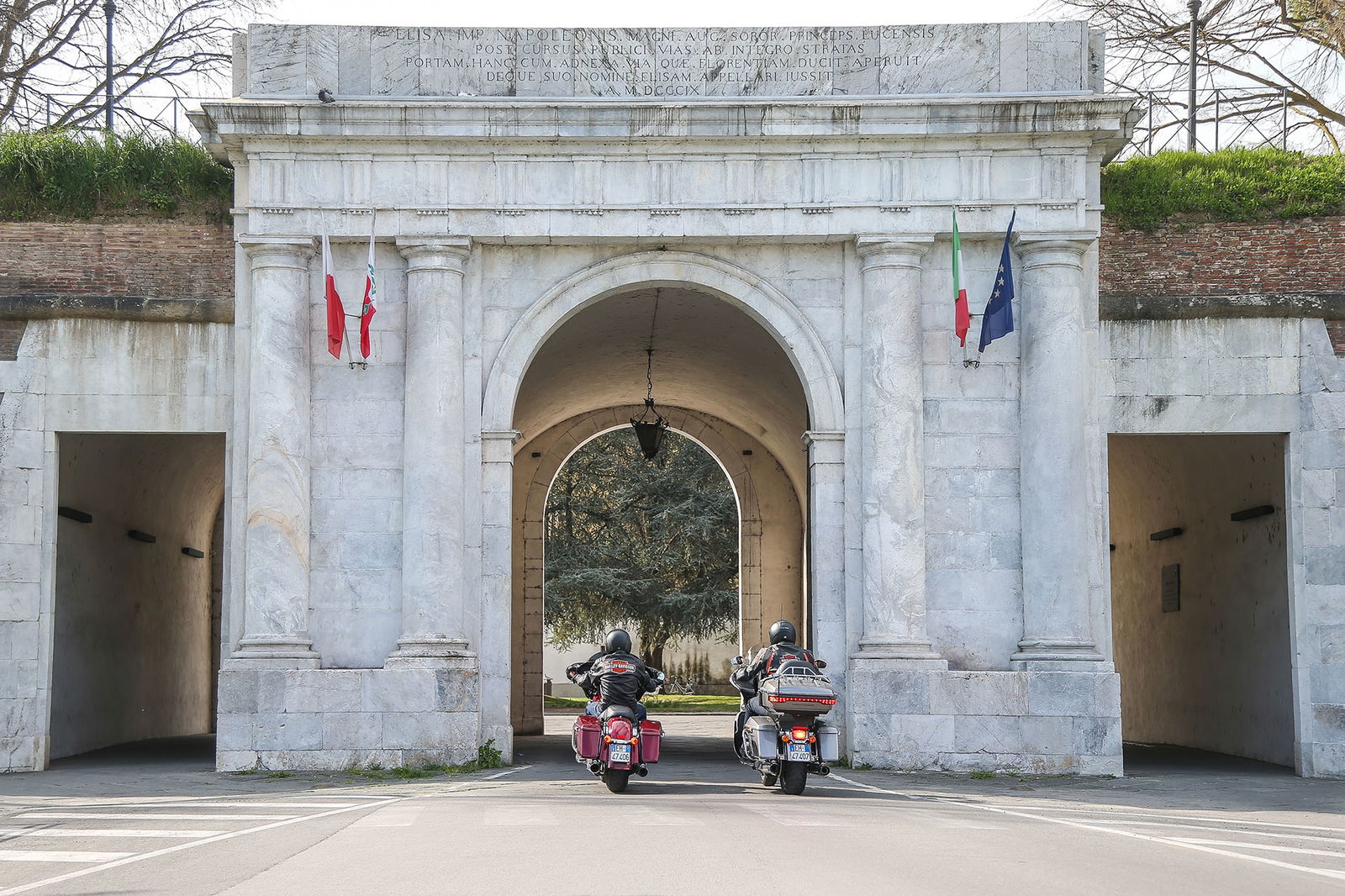 Nel mirino ora c’è il Mugello, ma questa volta l’autodromo più bello d’Italia non lo vedremo neppure da fuori: passiamo da Borgo San Lorenzo e via, senza però dimenticare il Passo del Giogo (882 metri slm), meta irrinunciabile lungo una strada unica. Consigliamo una visita al Museo della Seconda Guerra Mondiale: si chiama Centro Documentazione e Ricerche Storiche di Gotica Toscana e si trova in Località Ponzalla 47, nel comune di Scarperia. Qui sono conservati reperti difficili persino da immaginare, tra cui alimenti tipo barrette di cioccolato confezionate settant’anni fa. Pazzesco. Lucca è la meta successiva: siamo un po’ in ritardo con la tabella di marcia, raggiungiamo la città e le sue famose mura tramite autostrada.