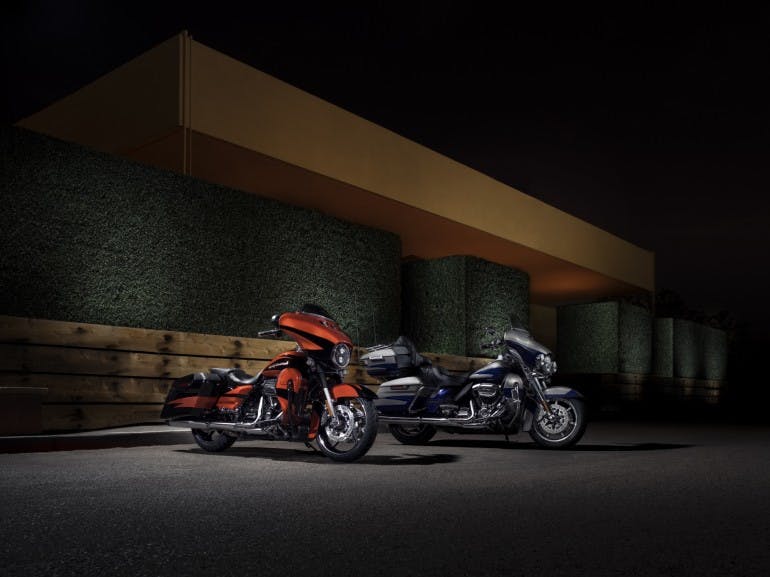 La principale novità della gamma 2017 è naturalmente l’arrivo del motore Milwaukee-Eight, che va a equipaggiare le Touring e le CVO. In due cilindrate e tre versioni sarà così utilizzato:- 107 con raffreddamento ad olio delle teste per i modelli 2017 Street Glide Special, Road Glide Special, Road King e Road King Classic, Freewheeler;- 107 con raffreddamento a liquido (Twin-Cooled Milwaukee Eight 107) per Ultra Limited e Ultra Limited Low, Road Glide Ultra e Tri Glide Ultra;- 114 con raffreddamento a liquido (Twin-Cooled Milwaukee Eight 114) per i modelli CVO Limited e CVO Street Glide, che compogono la gamma Custom Vehicle Operations 2017 insieme al CVO Pro Street Brakout, unico modello di fascia alta che resta fedele al motore 110 di precedente generazione.Tra le novità per Touring e CVO un posto di rilievo spetta alle sospensioni, riviste per migliorare ancora il già sontuoso comfort di marcia. Al retrotreno vengono ampliate le possibilità di regolazione del precarico della coppia di ammortizzatori: si passa al comando idraulico con un’apposita manopola, liberando il motociclista dalla necessità di usare attrezzi specifici. La regolazione è possibile soltanto sull’ammortizzatore di sinistra e richiede lo smontaggio della valigia laterale. Infine l’impiego di pistoni dell’ammortizzatore di maggior diametro dovrebbe migliorare la risposta complessiva della sospensione. All’avantreno Harley ha scelto Showa e il suo sistema Dual Bending Valve (SDBV), forte di 98 mm di escursione e di un comportamento presumibilmente migliore rispetto alla forcella dei modelli precedenti; inoltre il peso è più contenuto.Tra le novità della gamma CVO, oltre naturalmente al motore 114 raffreddato a liquido, ricordiamo la chiusura centralizzata con una sola chiave per borse laterali e bloccasterzo. La CVO Street Glide, proposta in quattro nuovi colori, monta la sella ridisegnata e quattro altoparlanti Boom! Audio da 600W di potenza. Quattro colori anche per la CVO Limited, anch’essa con sella rimodellata e cerchi cromati Slicer.